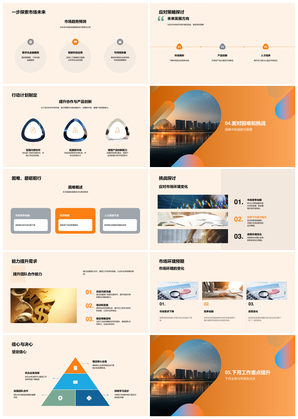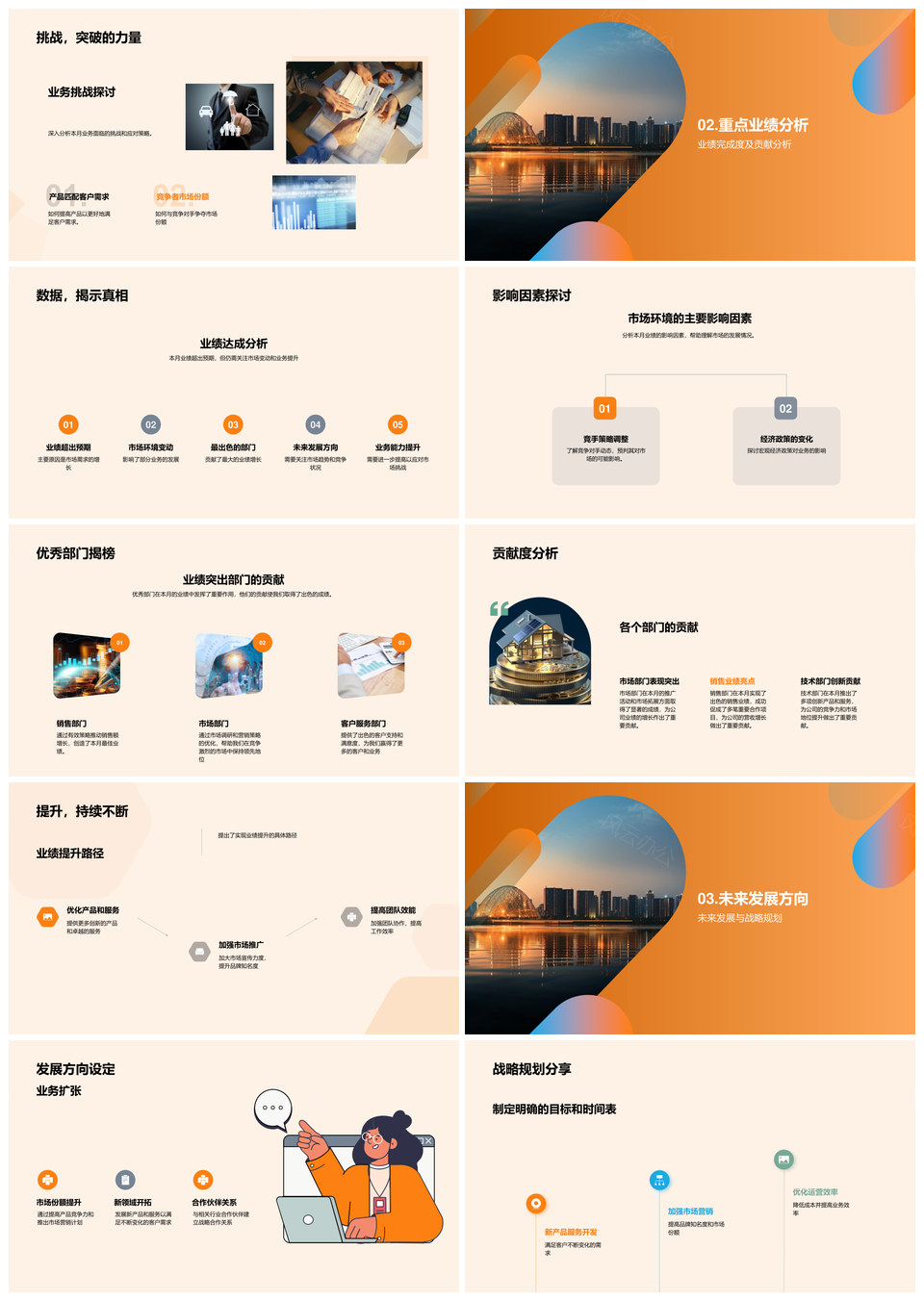 这是一张全景业务剖析市场战略演变月度业绩趋势提升PPT模板,包含全景业务、剖析、市场战略、演变、月度业绩、趋势、提升等主题内容,也可用作全景业务剖析市场战略、业务剖析市场战略演变、剖析市场战略演变月度、市场战略演变月度业绩、战略演变月度业绩趋势、演变月度业绩趋势提升、月度业绩趋势提升全景、全景业务剖析市场、业务剖析市场战略、市场战略演变月度、战略演变月度业绩、演变月度业绩趋势、月度业绩趋势提升、业务剖析市场、市场战略演变等PPT场景使用。 风云办公提供的全景业务剖析市场战略演变月度业绩趋势提升PPT模板,下载格式为pptx,一共33页,作品中文字及图均可以修改和编辑,图片更改请在作品中右键图片并更换,文字修改请直接点击文字进行修改。