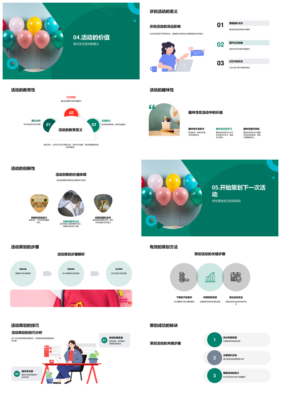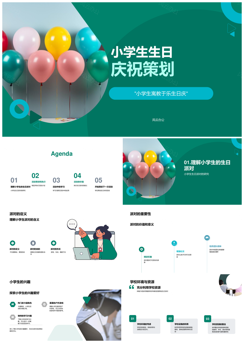 小学生生日派对校园协作社交安全节省策划PPT模板推荐