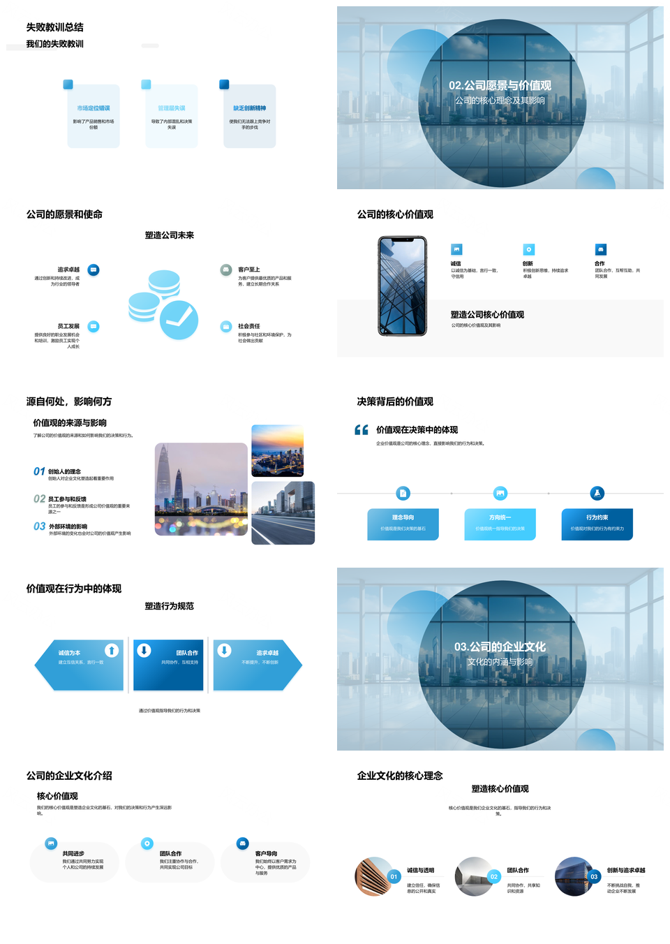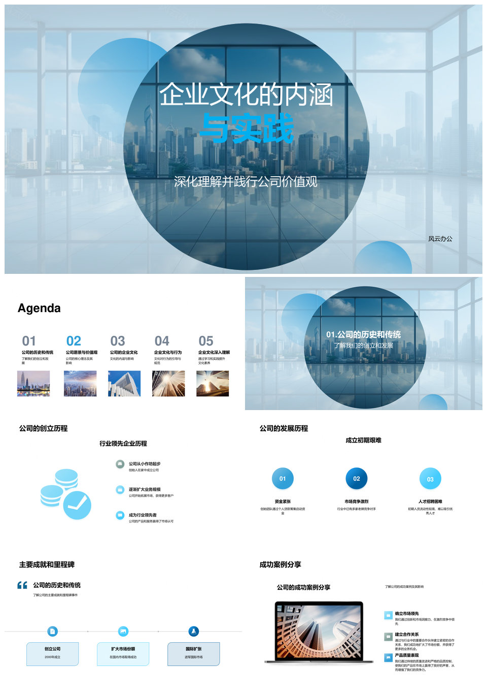 企业文化发展中的价值观实践与新员工培训历史成就企业大楼PPT模板