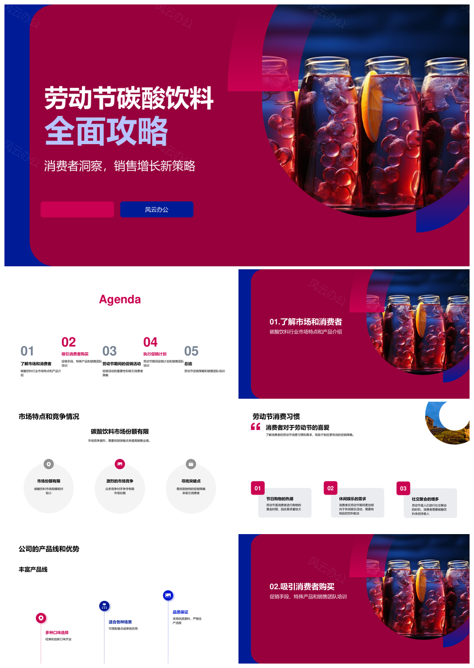 这是一张劳动节碳酸饮料市场促销产品线打折套餐攻略PPT模板,包含劳动节、碳酸饮料、市场、促销、产品线、打折、套餐、攻略等主题内容,也可用作劳动节碳酸饮料促销套餐、碳酸饮料市场促销产品线、促销产品线打折套餐攻略、劳动节市场促销打折套餐、碳酸饮料产品线打折攻略、劳动节产品线打折促销、促销套餐攻略产品线、碳酸饮料促销打折套餐、市场促销产品线攻略、打折套餐促销攻略、促销产品线套餐、劳动节促销套餐、碳酸饮料促销攻略、产品线打折套餐、市场促销攻略等PPT场景使用。 风云办公提供的劳动节碳酸饮料市场促销产品线打折套餐攻略PPT模板,下载格式为pptx,一共23页,作品中文字及图均可以修改和编辑,图片更改请在作品中右键图片并更换,文字修改请直接点击文字进行修改。