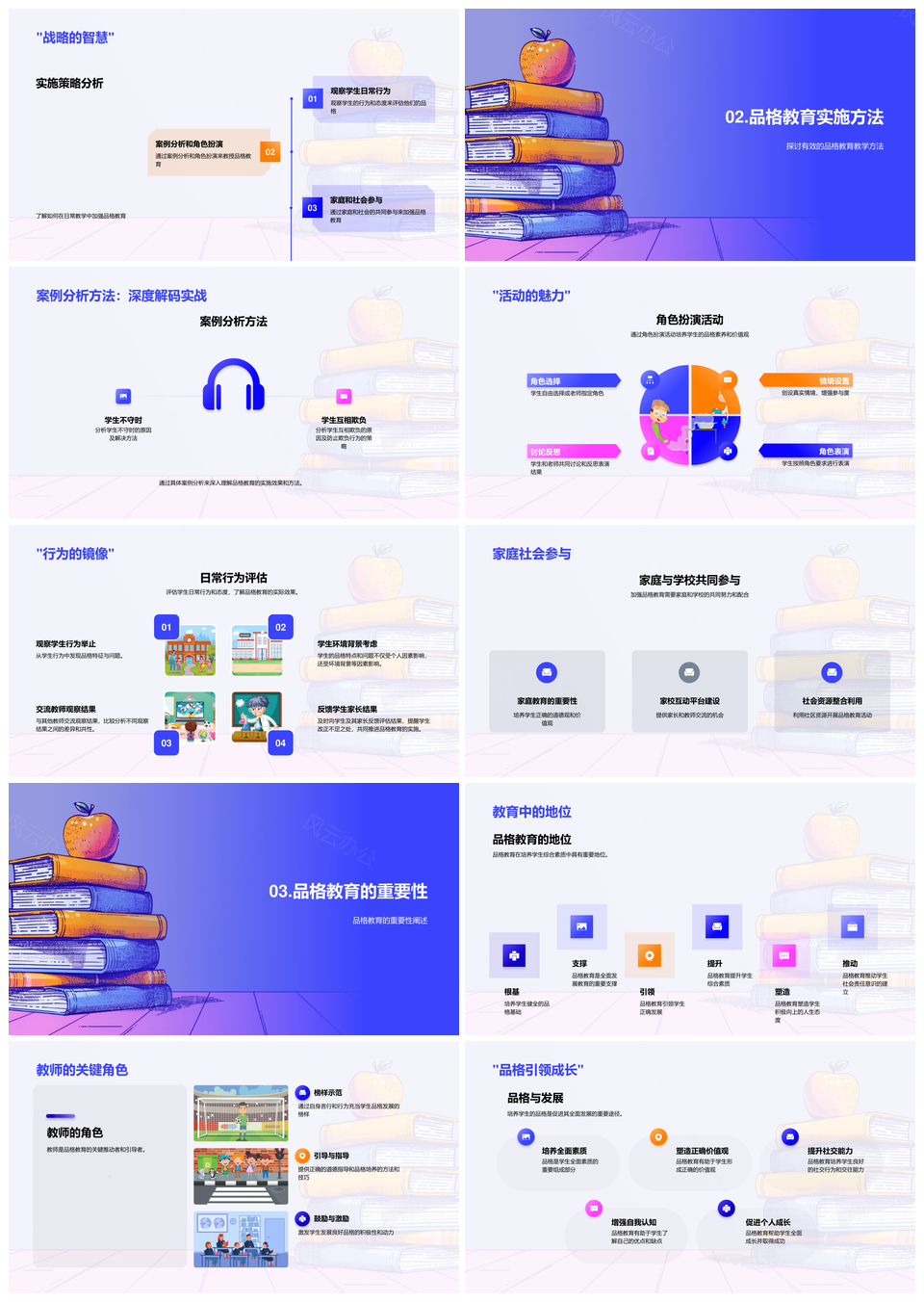 品格教育实践策略家校社案例分析与角色评估PPT模板推荐