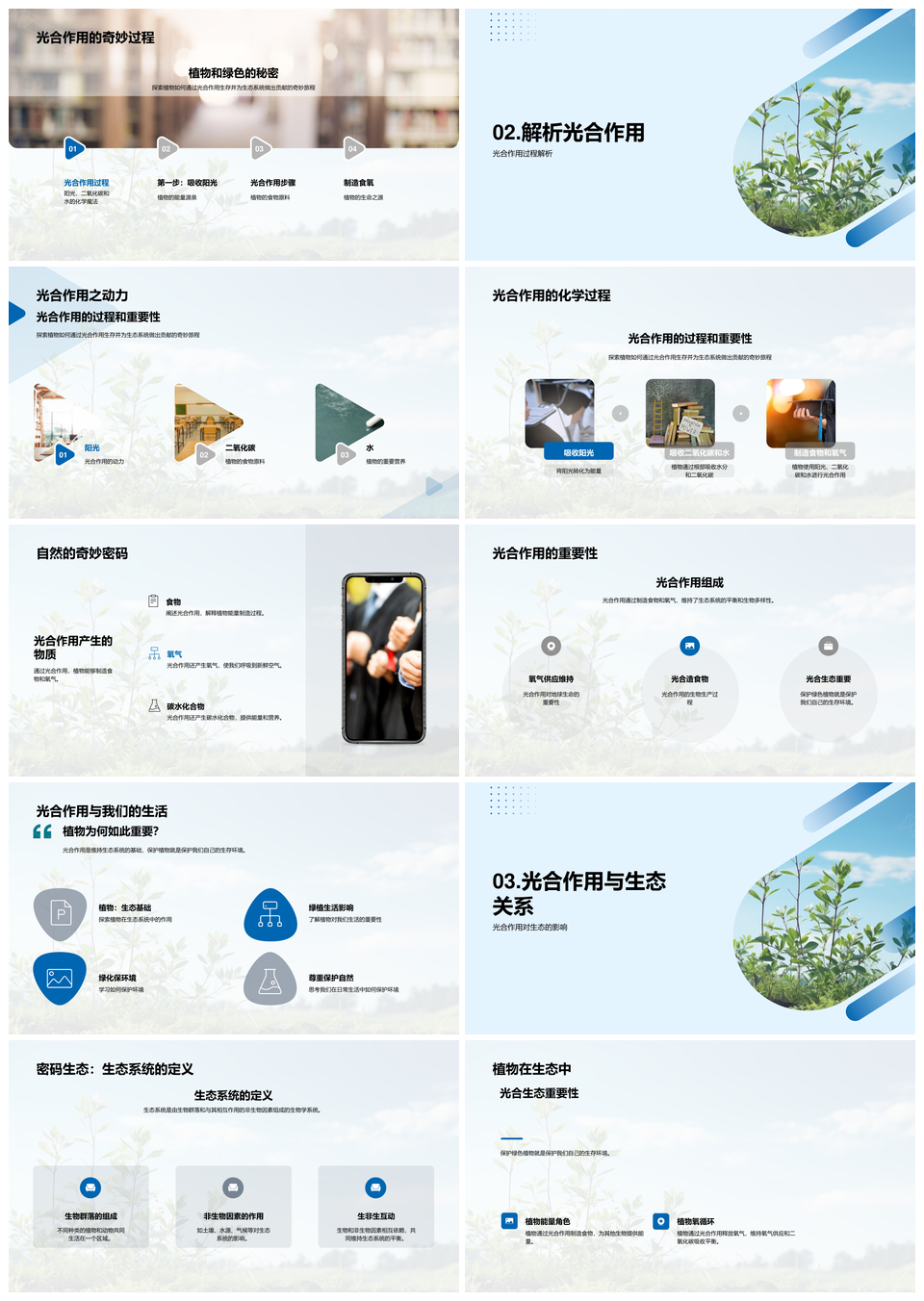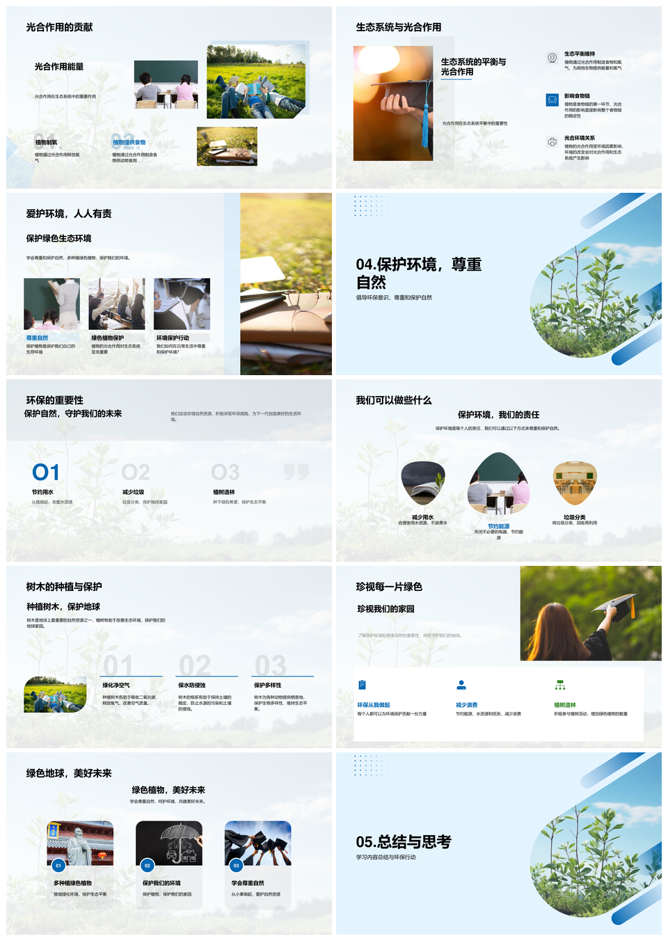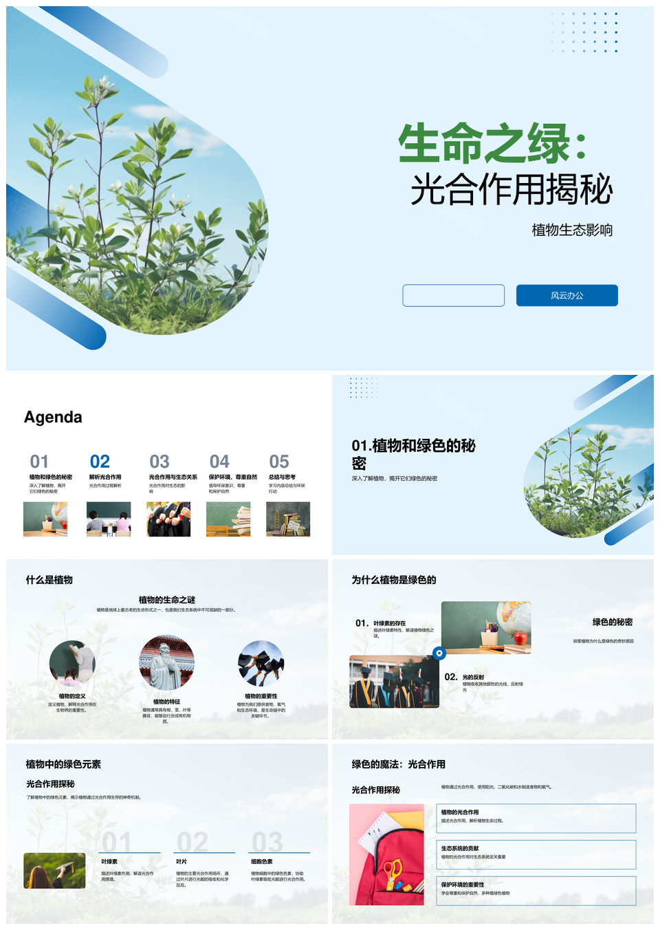 风云办公提供的绿色植物光合作用维系生态环保教育PPT模板,下载格式为pptx,一共33页,作品中文字及图均可以修改和编辑,图片更改请在作品中右键图片并更换,文字修改请直接点击文字进行修改。