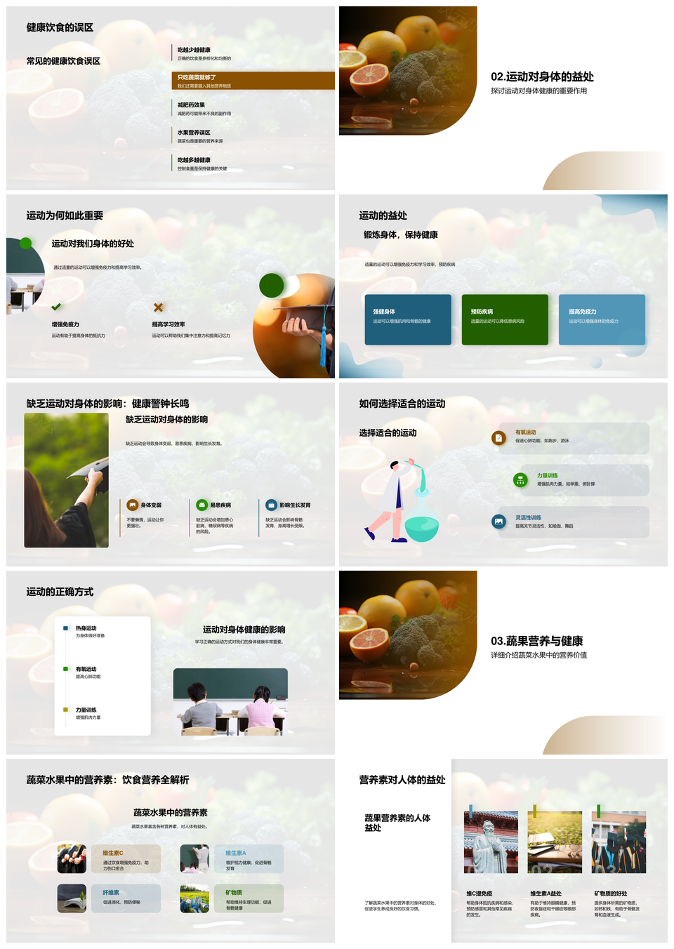 风云办公提供的健康饮食运动蔬果营养强免疫增效率PPT模板,下载格式为pptx,一共33页,作品中文字及图均可以修改和编辑,图片更改请在作品中右键图片并更换,文字修改请直接点击文字进行修改。