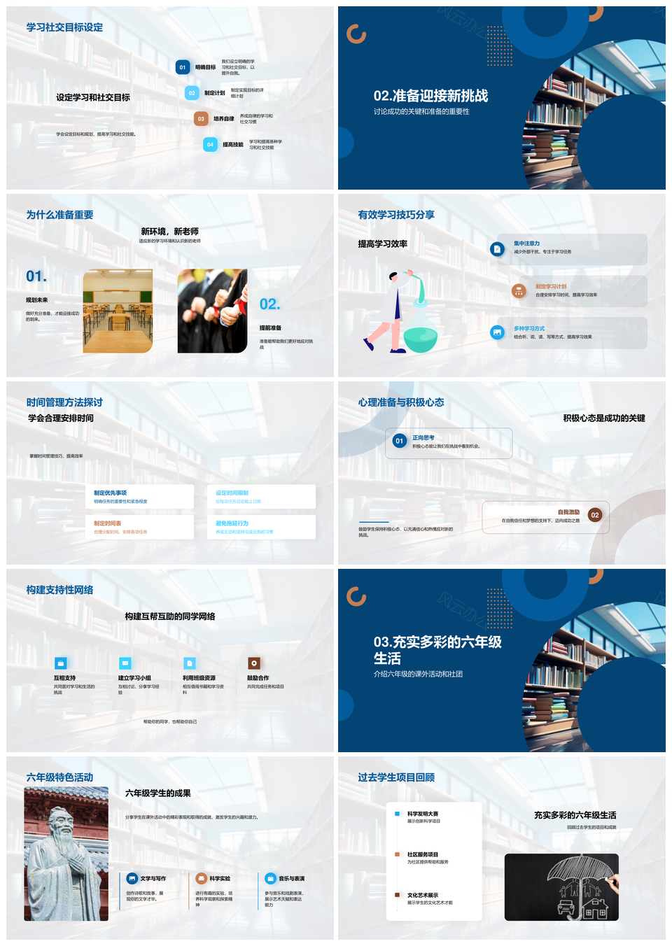 六年级新境课程应对学习社交技巧管理特色活动校楼PPT模板推荐