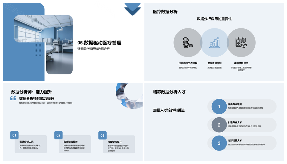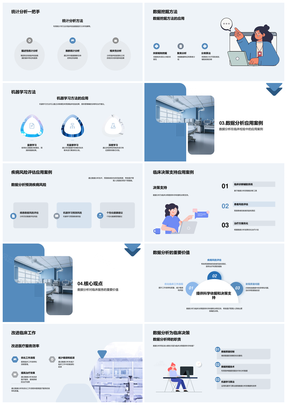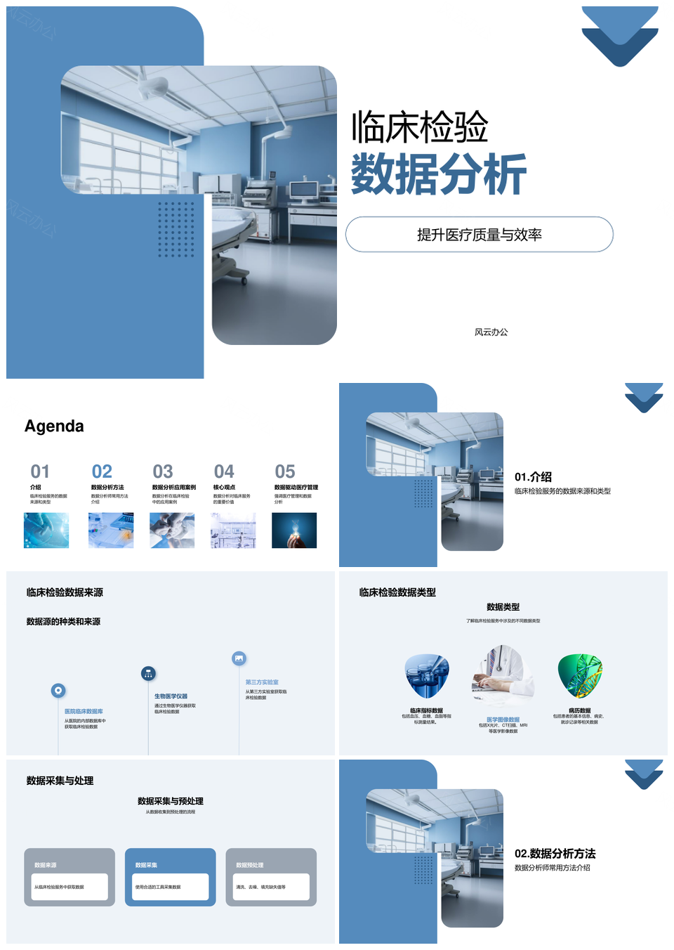 风云办公提供的医疗管理中临床检验数据分析方法应用PPT模板,下载格式为pptx,一共22页,作品中文字及图均可以修改和编辑,图片更改请在作品中右键图片并更换,文字修改请直接点击文字进行修改。