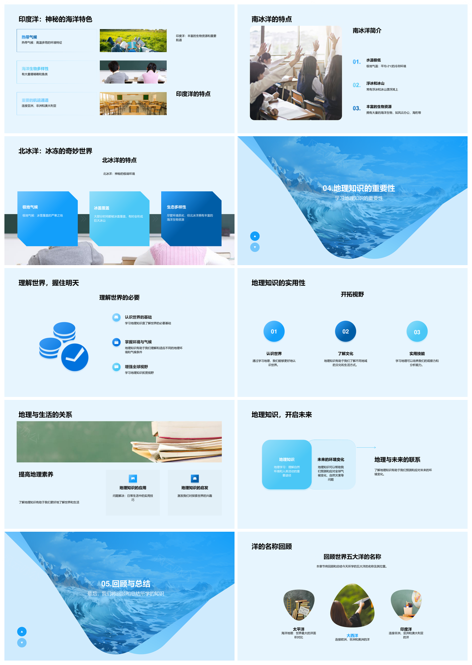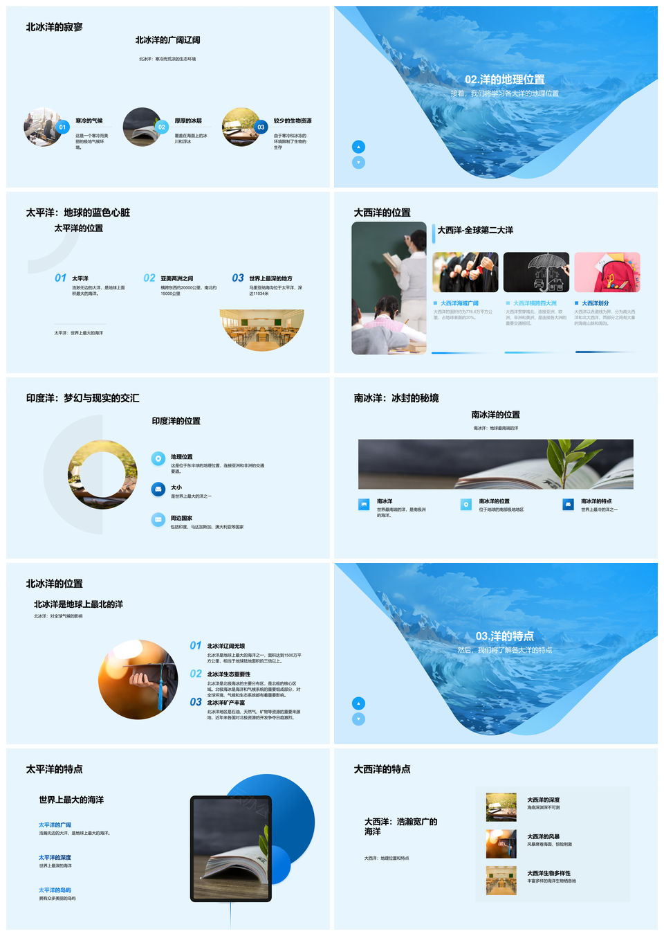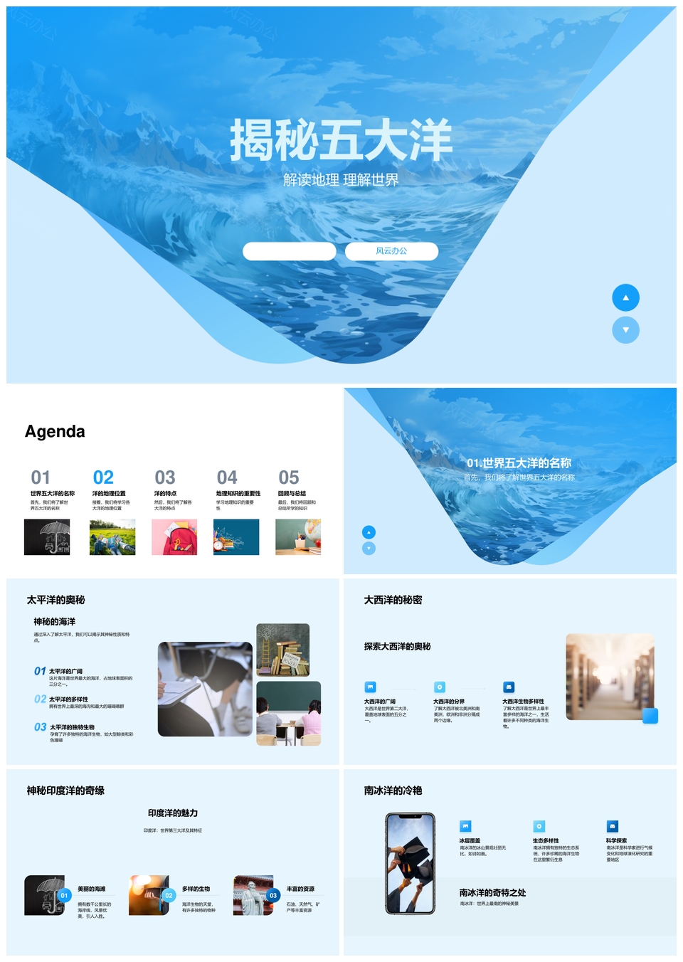 风云办公提供的世界地图五大洋地理教学探秘PPT模板,下载格式为pptx,一共32页,作品中文字及图均可以修改和编辑,图片更改请在作品中右键图片并更换,文字修改请直接点击文字进行修改。