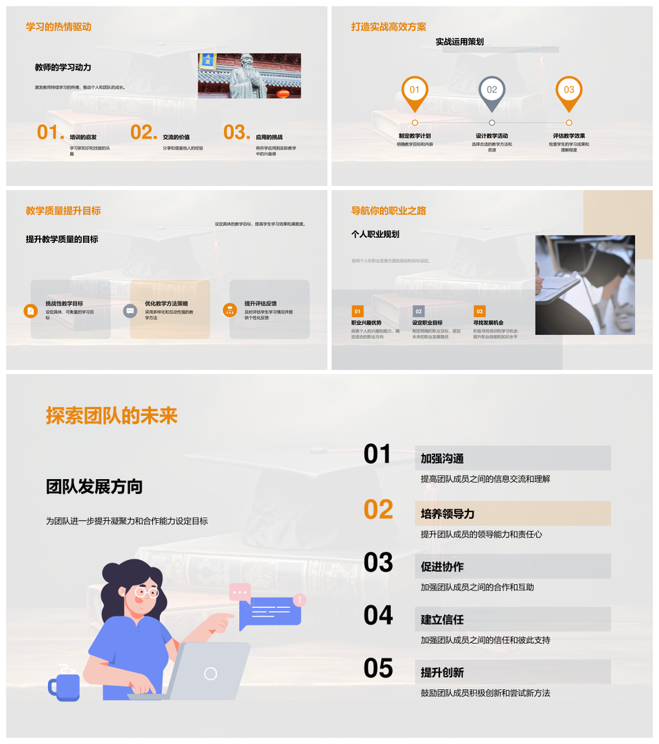 这是一张教师培训成果展技能提升团队凝聚未来PPT模板,包含教师培训、成果展、技能提升、团队凝聚、未来等主题内容,也可用作教师培训技能提升、教师培训提升团队、培训技能提升团队、技能提升团队凝聚、提升团队凝聚未来、教师培训成果展、成果展技能提升、技能提升团队、提升团队凝聚、团队凝聚未来、培训技能提升、教师团队凝聚、教师提升团队、教师培训、技能提升等PPT场景使用。