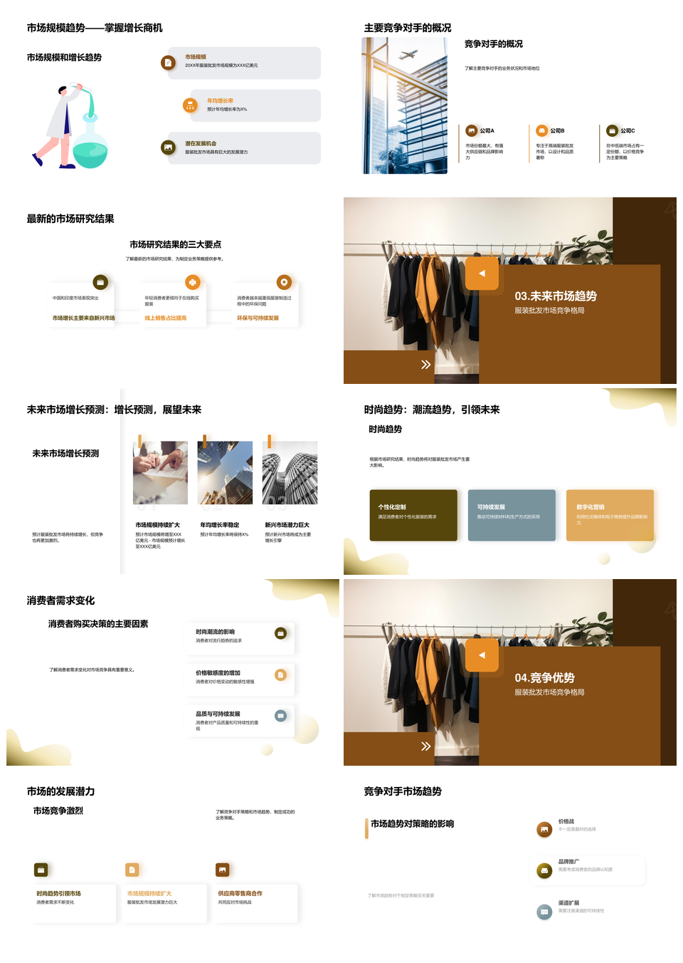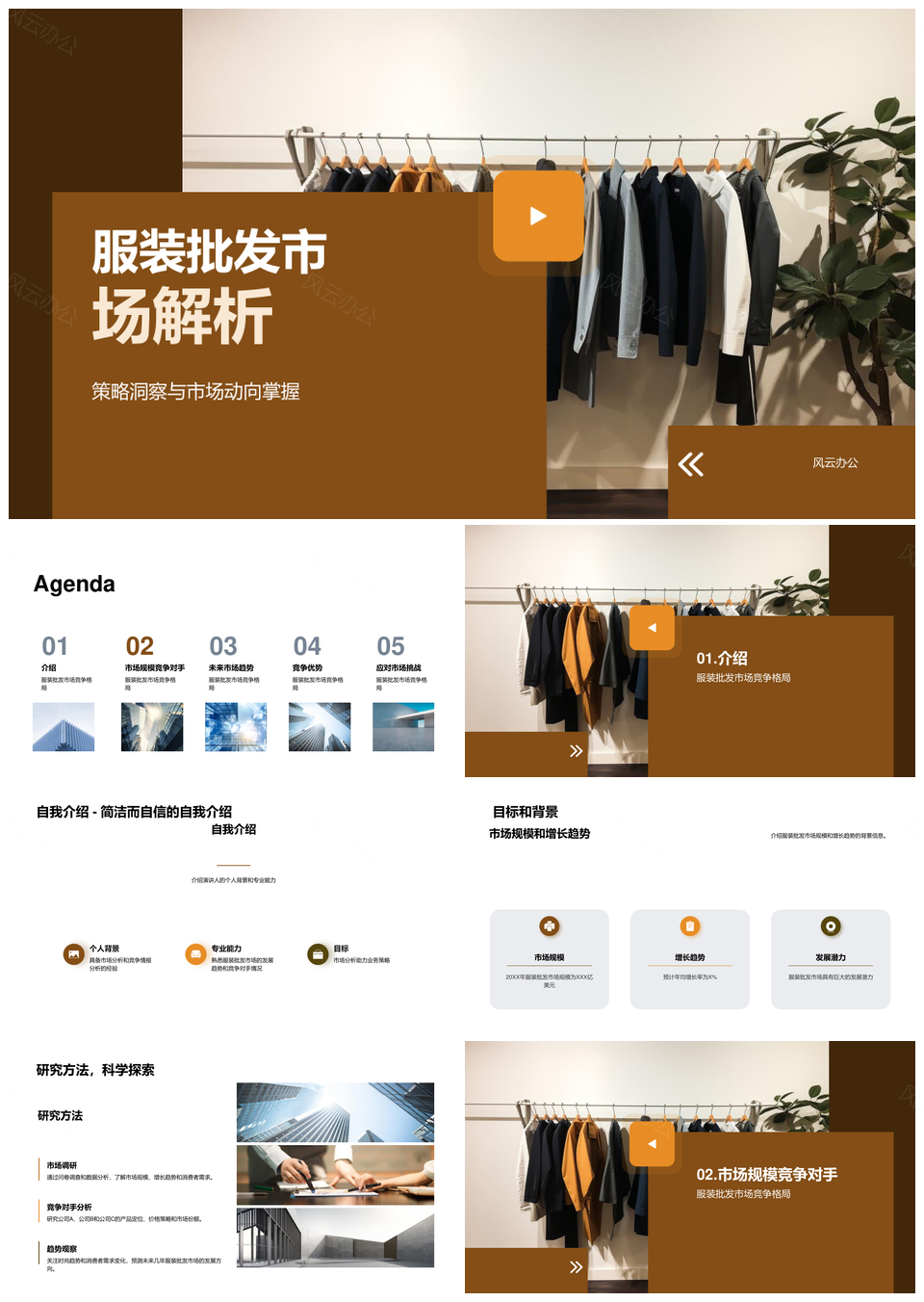 风云办公提供的服装批发市场竞争格局规模趋势分析PPT模板,下载格式为pptx,一共23页,作品中文字及图均可以修改和编辑,图片更改请在作品中右键图片并更换,文字修改请直接点击文字进行修改。