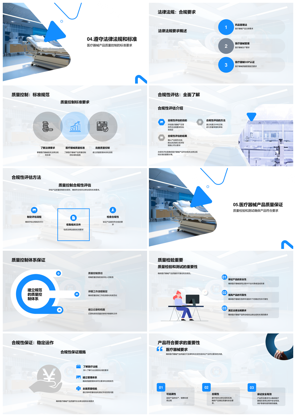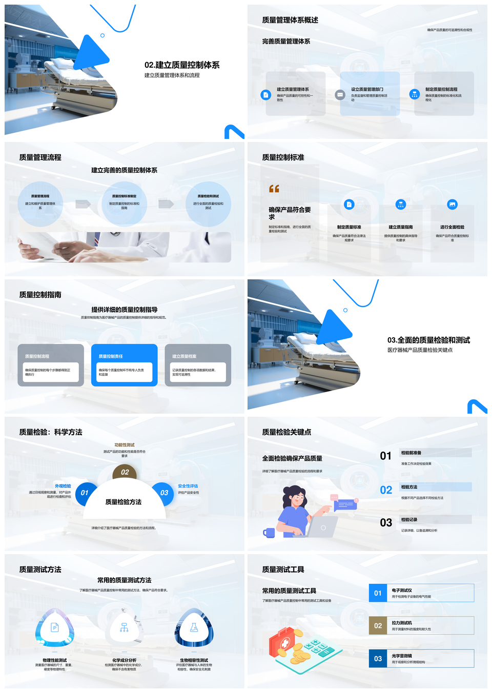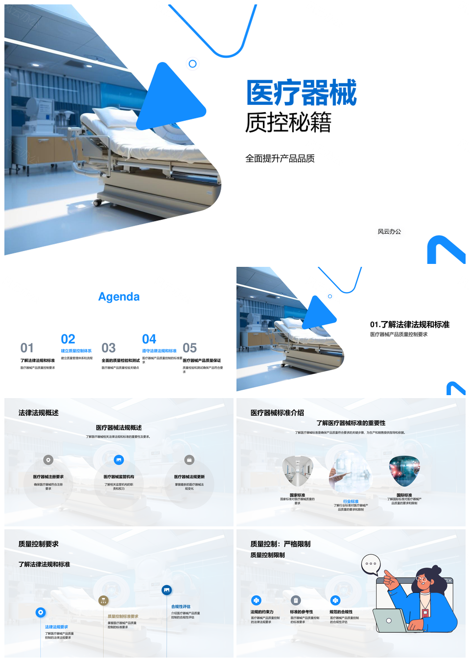 这是一张医疗器械质控法规标准质量体系流程指南PPT模板,包含医疗器械、质控、法规、标准、质量体系、流程、指南等主题内容,也可用作医疗器械质控法规标准、质控法规标准质量、法规标准质量体系、标准质量体系流程、质量体系流程指南、质控法规标准、法规标准质量、标准质量体系、质量体系流程、体系流程指南、医疗器械质控、质控法规、法规标准、标准质量、质量体系等PPT场景使用。 风云办公提供的医疗器械质控法规标准质量体系流程指南PPT模板,下载格式为pptx,一共28页,作品中文字及图均可以修改和编辑,图片更改请在作品中右键图片并更换,文字修改请直接点击文字进行修改。
