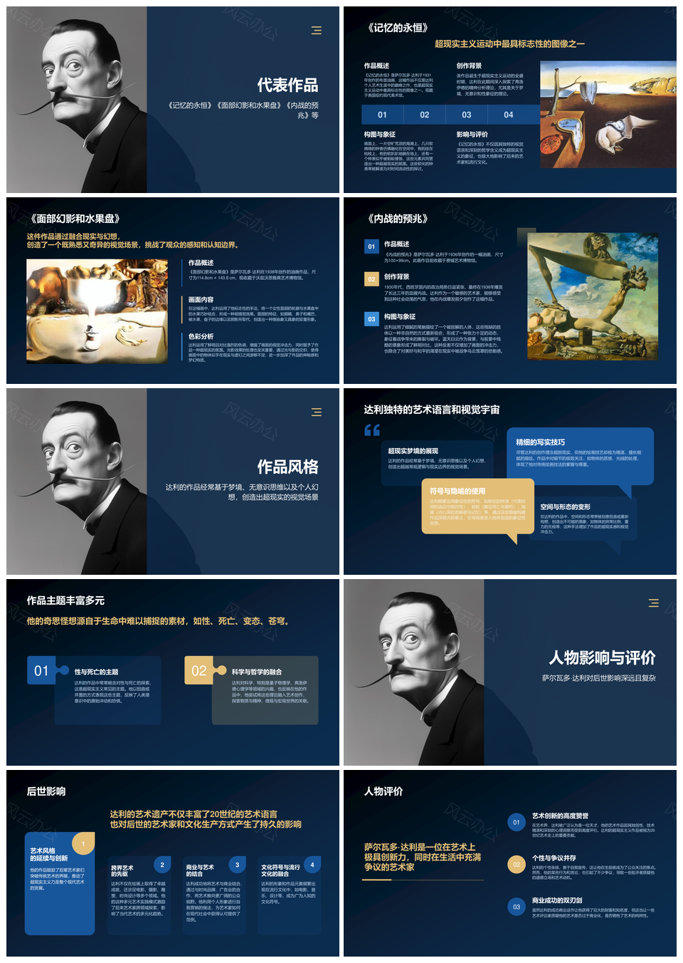 超现实主义画家达利艺术生涯创作理念作品分析PPT模板推荐