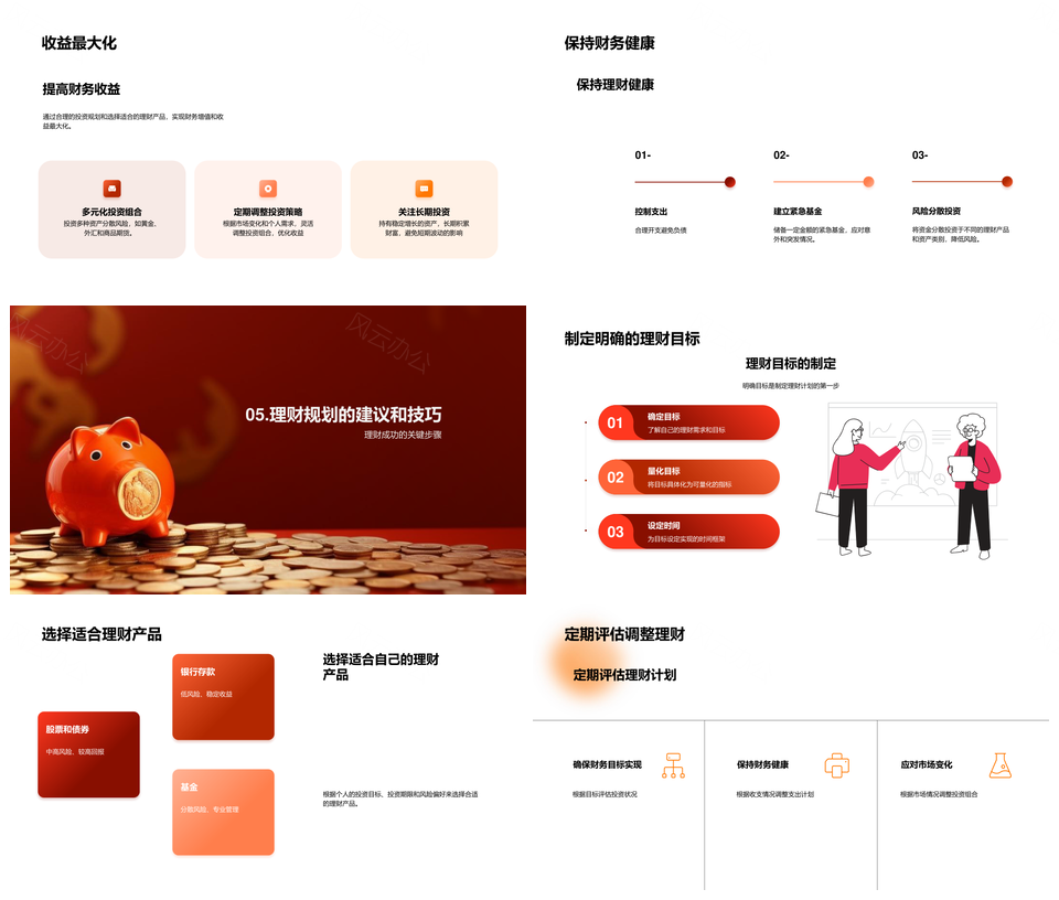 风云办公提供的个人理财规划与投资建议收支风险管理PPT模板,下载格式为pptx,一共24页,作品中文字及图均可以修改和编辑,图片更改请在作品中右键图片并更换,文字修改请直接点击文字进行修改。