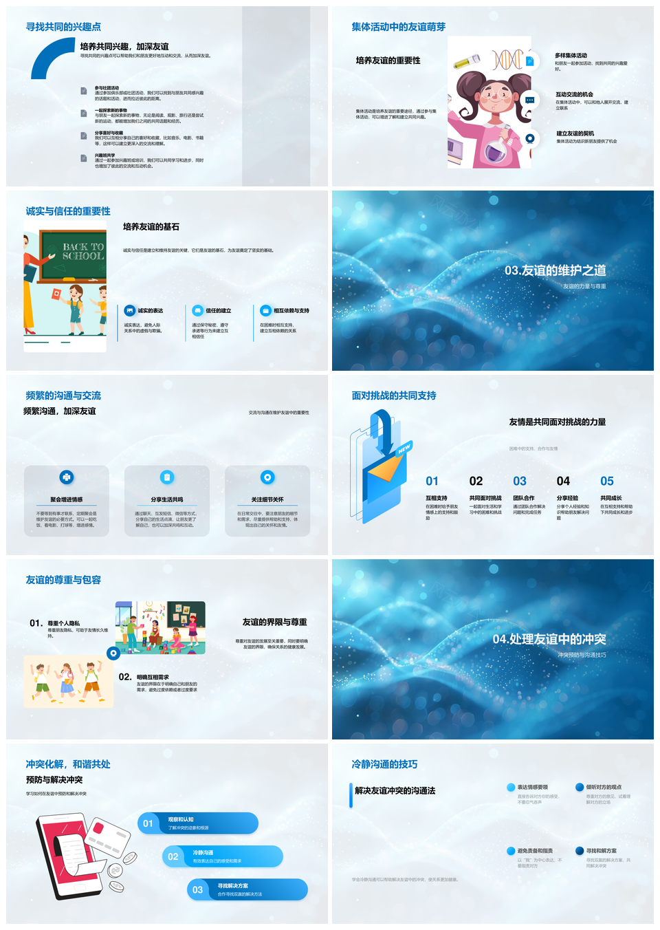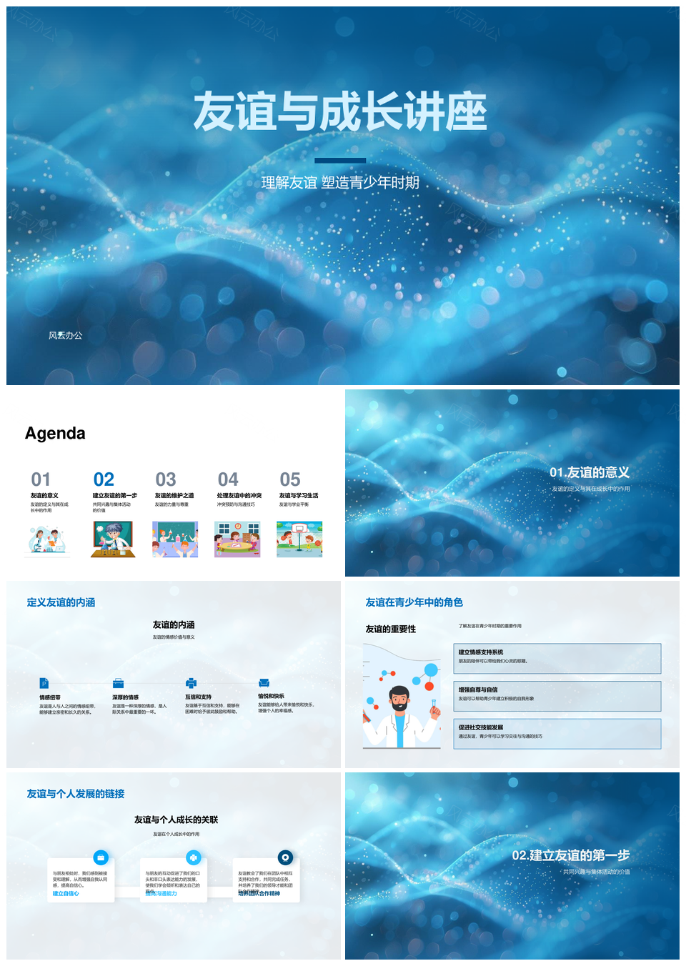 风云办公提供的青少年友谊成长建立维护冲突预防讲座PPT模板,下载格式为pptx,一共23页,作品中文字及图均可以修改和编辑,图片更改请在作品中右键图片并更换,文字修改请直接点击文字进行修改。