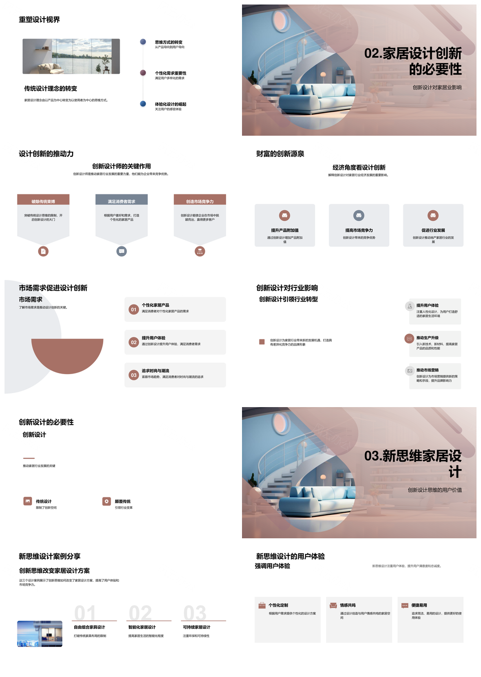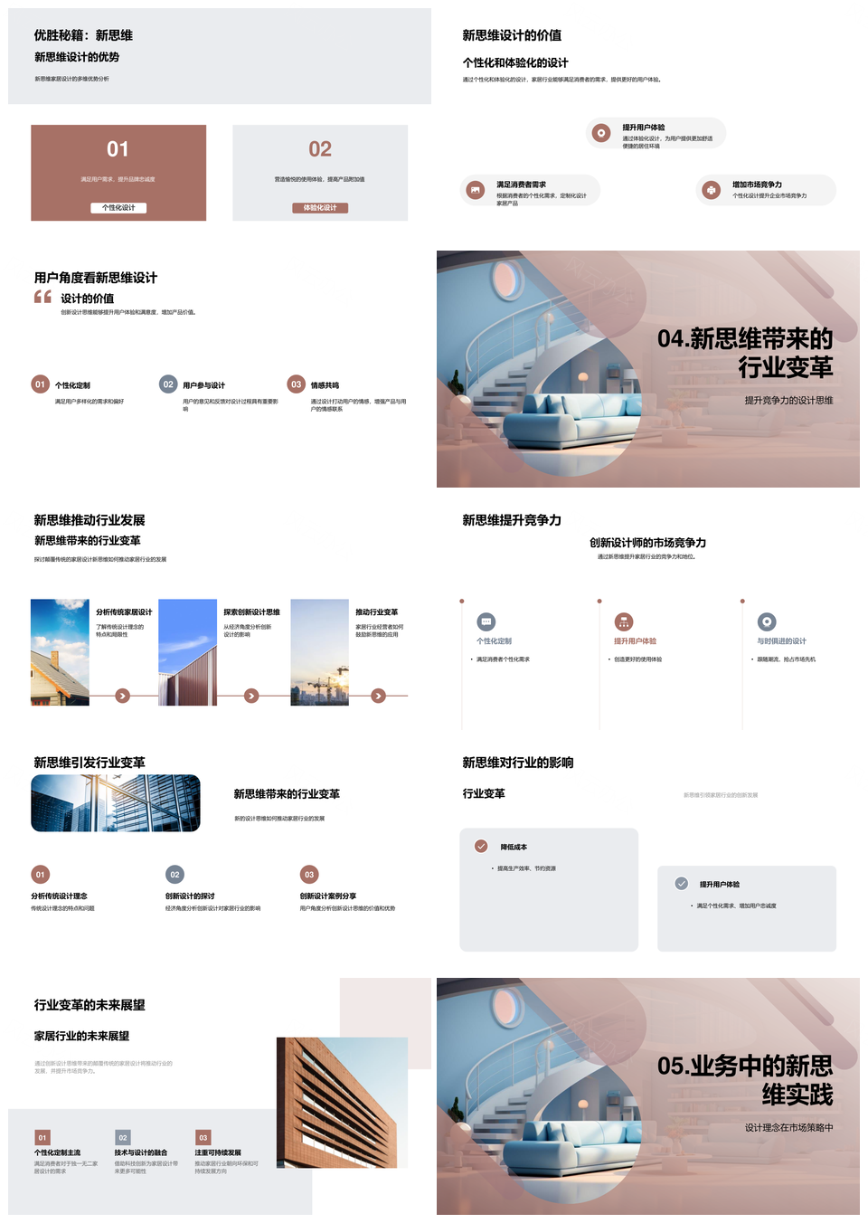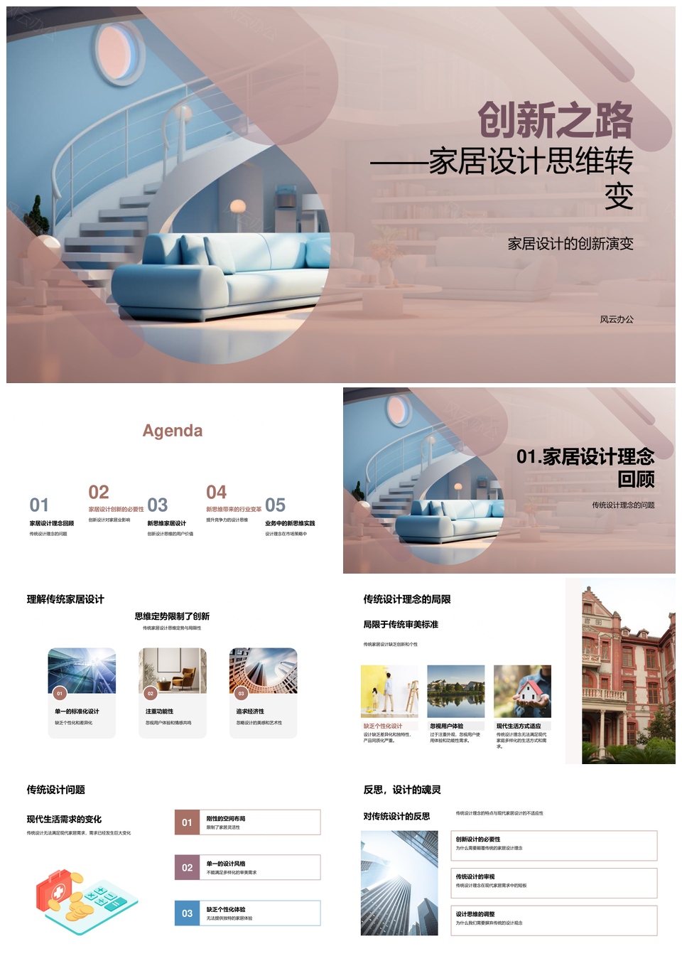 风云办公提供的家居设计思维革新驱动行业创新变革PPT模板,下载格式为pptx,一共33页,作品中文字及图均可以修改和编辑,图片更改请在作品中右键图片并更换,文字修改请直接点击文字进行修改。