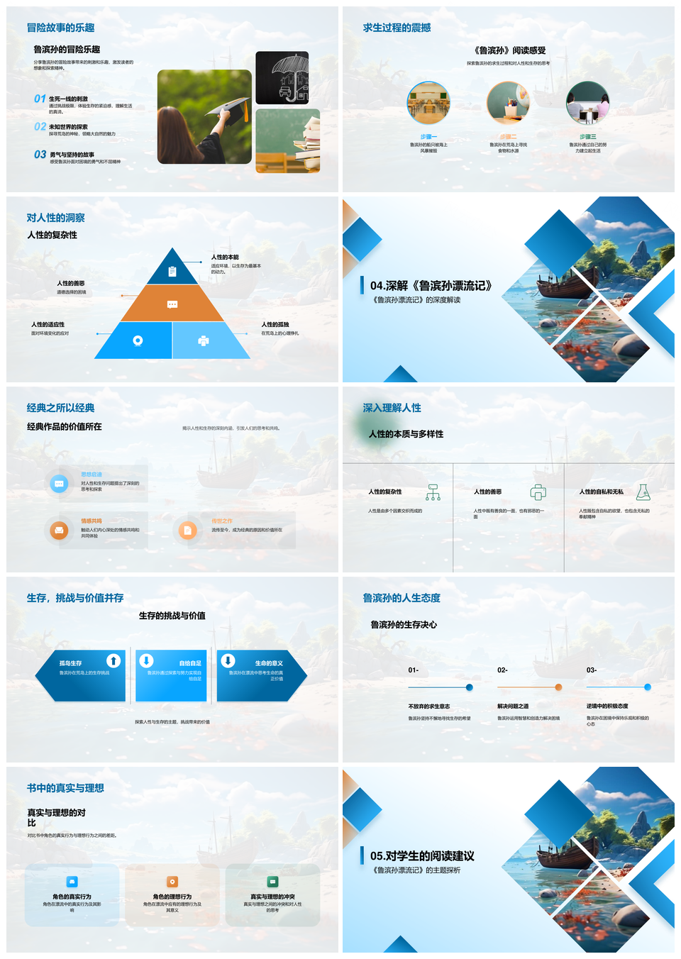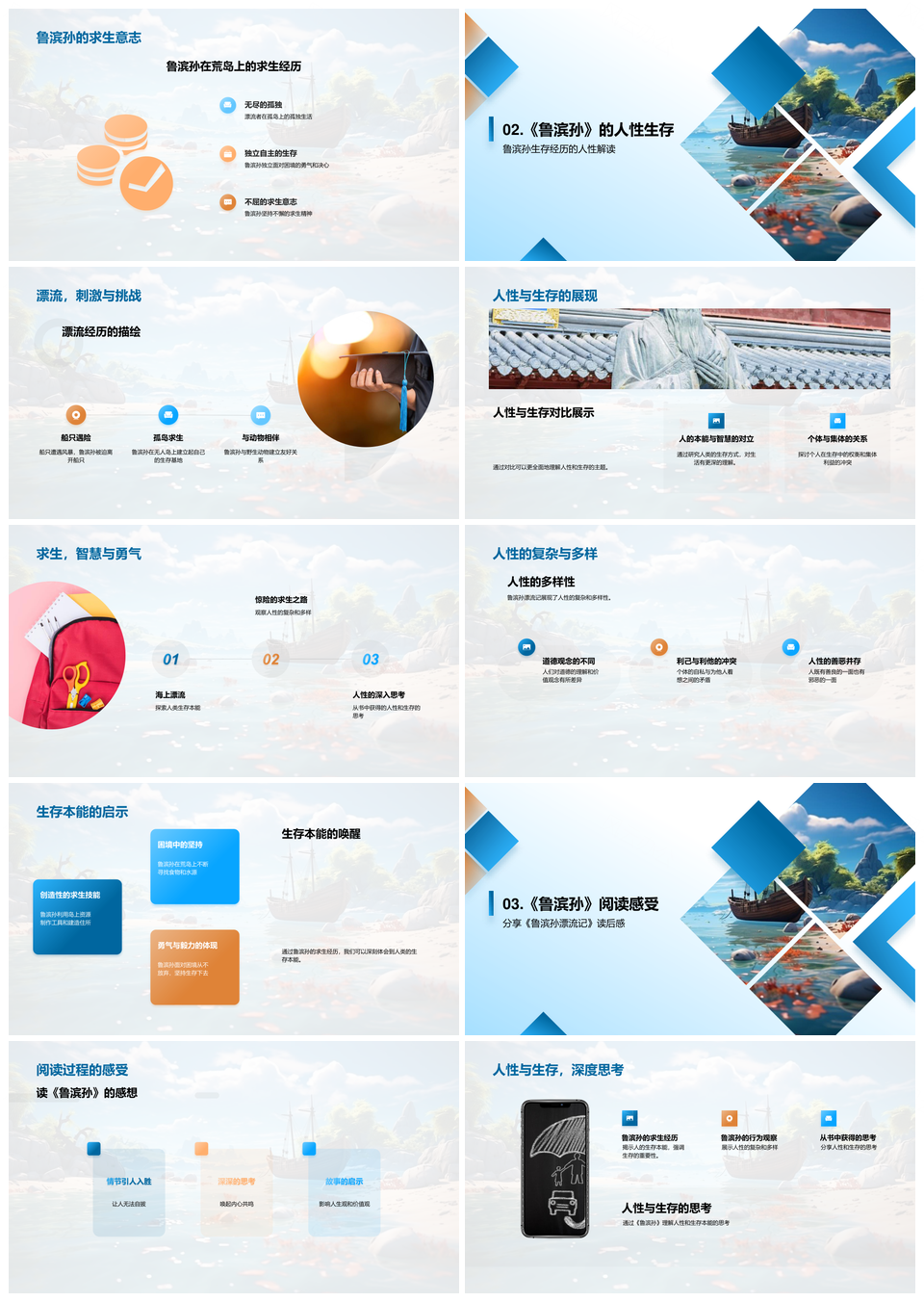 风云办公提供的鲁滨孙荒岛求生与人性探索PPT模板,下载格式为pptx,一共33页,作品中文字及图均可以修改和编辑,图片更改请在作品中右键图片并更换,文字修改请直接点击文字进行修改。