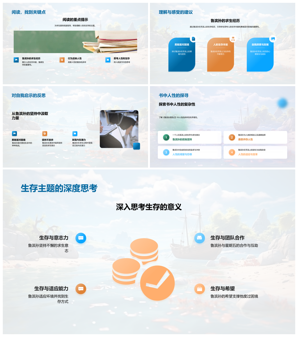 这是一张鲁滨孙荒岛求生与人性探索PPT模板,包含鲁滨孙、荒岛、求生、人性、探索等主题内容,也可用作鲁滨孙荒岛求生探索、荒岛求生人性探索、鲁滨孙荒岛人性探索、鲁滨孙荒岛求生、荒岛求生人性、求生人性探索、鲁滨孙求生探索、鲁滨孙人性探索、荒岛人性探索、鲁滨孙荒岛探索、鲁滨孙荒岛、荒岛求生、求生探索、人性探索、鲁滨孙探索等PPT场景使用。