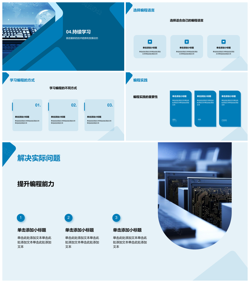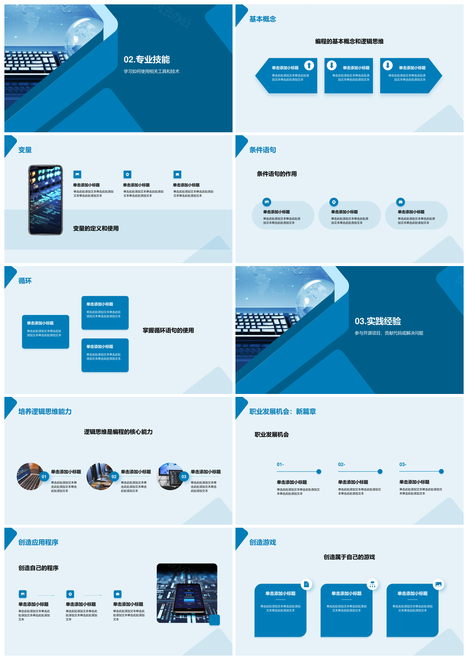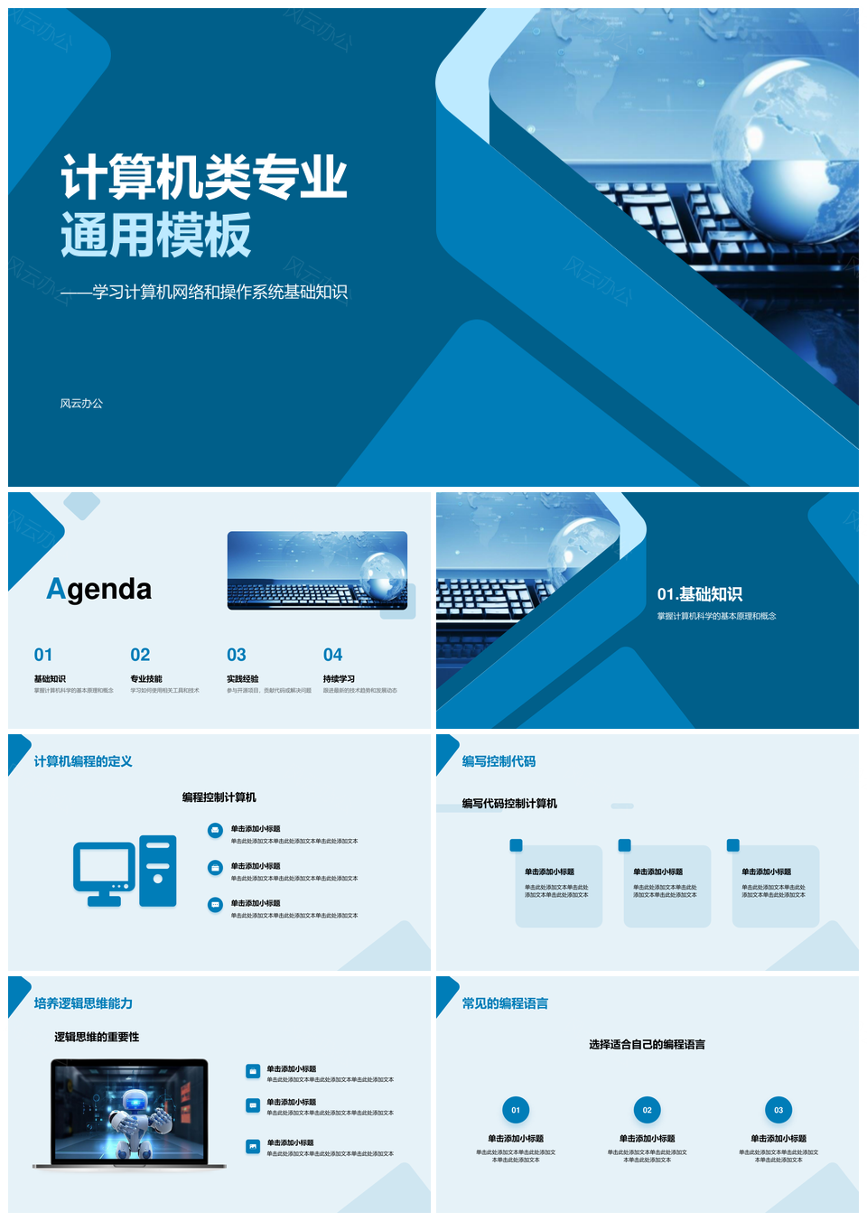 风云办公提供的蓝色商务简约计算机编程电子技术课件,下载格式为pptx,一共23页,作品中文字及图均可以修改和编辑,图片更改请在作品中右键图片并更换,文字修改请直接点击文字进行修改。