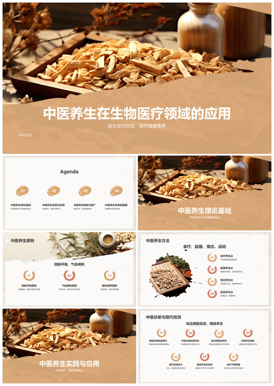 中医养生融合现代科技促进健康生活方式PPT模板推荐
