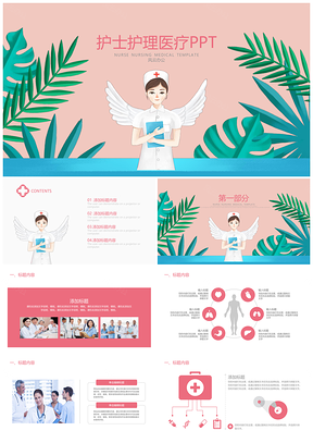 粉色卡通唯美简约风医疗护士护理工作汇报PPT模板