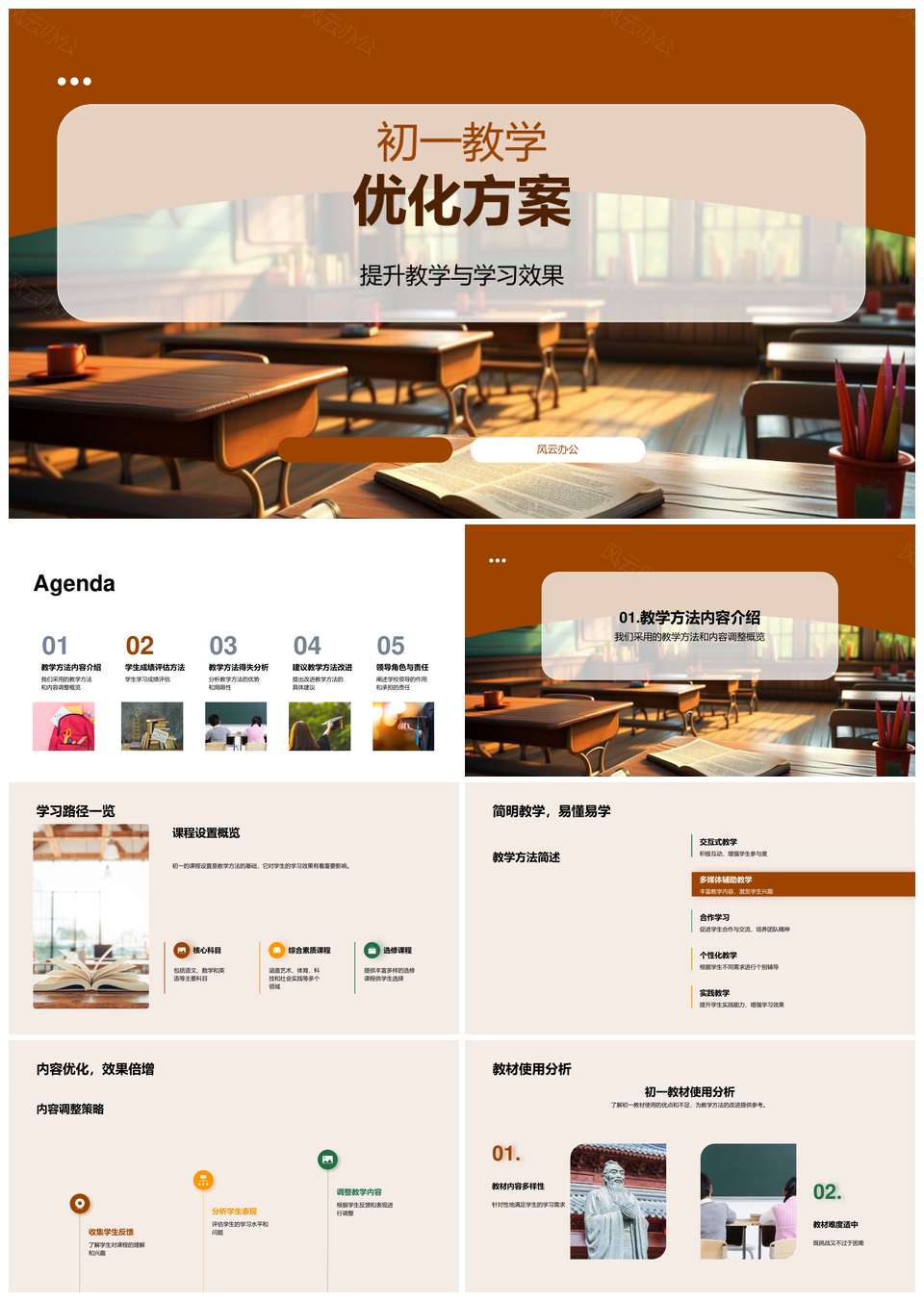风云办公提供的初一互动教学优化与成绩评估调整策略PPT模板,下载格式为pptx,一共33页,作品中文字及图均可以修改和编辑,图片更改请在作品中右键图片并更换,文字修改请直接点击文字进行修改。