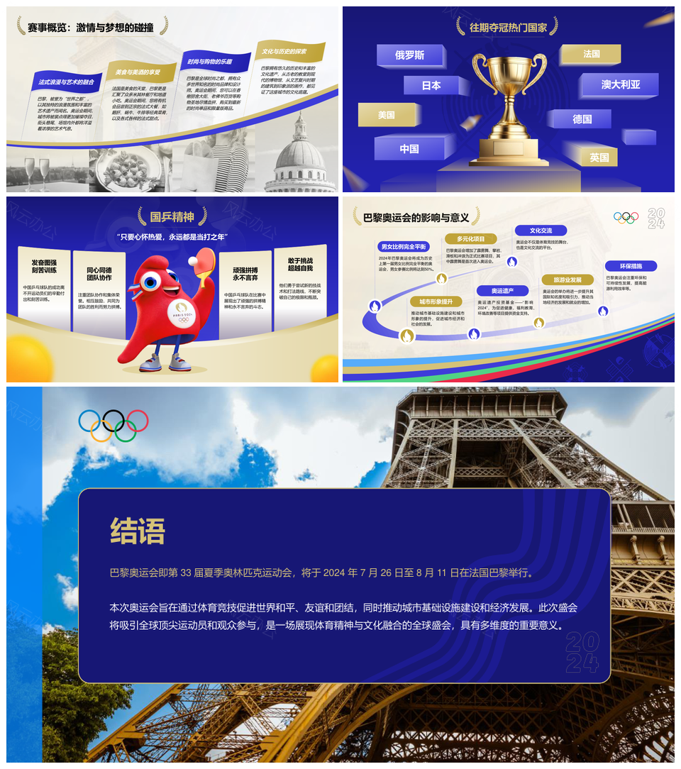 这是一张2024巴黎奥运中国健儿竞技吉祥物体育精神PPT模板,包含2024、巴黎、奥运、中国、健儿、竞技、吉祥物、体育、精神等主题内容,也可用作2024巴黎奥运中国健儿、巴黎奥运中国健儿竞技、奥运中国健儿竞技吉祥物、中国健儿竞技吉祥物体育、健儿竞技吉祥物体育精神、巴黎奥运吉祥物体育精神、2024巴黎奥运吉祥物、奥运中国健儿体育精神、中国健儿吉祥物体育、竞技吉祥物体育精神、巴黎奥运体育精神、2024中国健儿、健儿竞技体育、吉祥物体育精神、巴黎奥运中国等PPT场景使用。 风云办公提供的2024巴黎奥运中国健儿竞技吉祥物体育精神PPT模板,下载格式为pptx,一共13页,作品中文字及图均可以修改和编辑,图片更改请在作品中右键图片并更换,文字修改请直接点击文字进行修改。