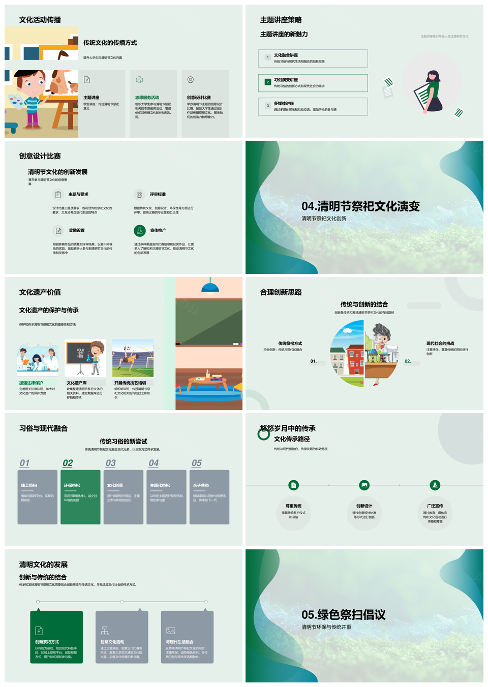 这是一张清明传统文化现代承续倡绿色环保PPT模板,包含清明、传统文化、现代承续、倡、绿色环保等主题内容,也可用作清明传统文化现代承续、清明传统文化现代、清明传统文化承续、清明传统文化绿色环保、传统文化现代承续、现代承续绿色环保、清明传统文化、传统文化现代、现代承续、承续绿色环保、清明承续、清明绿色环保、传统文化承续、传统文化绿色环保、现代绿色环保等PPT场景使用。