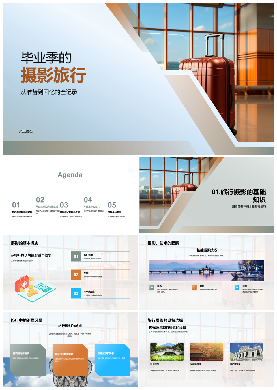 2025毕业旅行摄影设备技巧与行程策划PPT模板推荐
