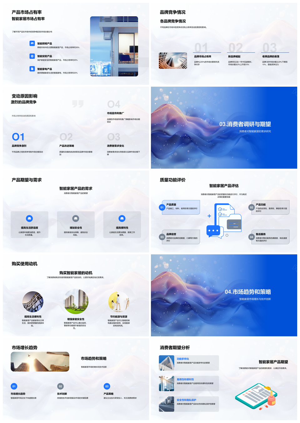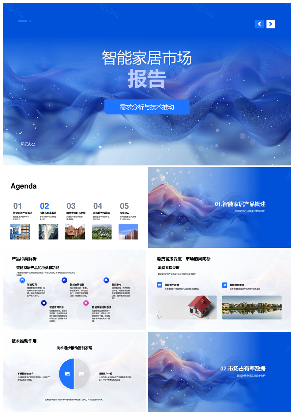 这是一张智能家居技术驱动市场需求分析市占消费接受品牌竞争PPT模板,包含智能家居技术、驱动、市场需求、分析、市占、消费、接受、品牌、竞争等主题内容,也可用作智能家居技术驱动市场需求分析、技术驱动市场需求分析市占、市场需求分析市占消费接受、分析市占消费接受品牌竞争、智能家居技术驱动市场、技术驱动市场需求分析、驱动市场需求分析市占、市场需求分析市占消费、市占消费接受品牌竞争、智能家居技术驱动、技术驱动市场需求、市场需求分析市占、消费接受品牌竞争、智能家居技术、市场需求分析、市占消费接受、消费接受品牌、接受品牌竞争等PPT场景使用。 风云办公提供的智能家居技术驱动市场需求分析市占消费接受品牌竞争PPT模板,下载格式为pptx,一共24页,作品中文字及图均可以修改和编辑,图片更改请在作品中右键图片并更换,文字修改请直接点击文字进行修改。