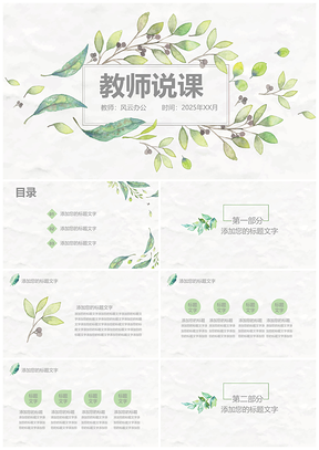风云办公提供的2025绿色小清新教师说课极简PPT模板,下载格式为pptx,一共14页,作品中文字及图均可以修改和编辑,图片更改请在作品中右键图片并更换,文字修改请直接点击文字进行修改。