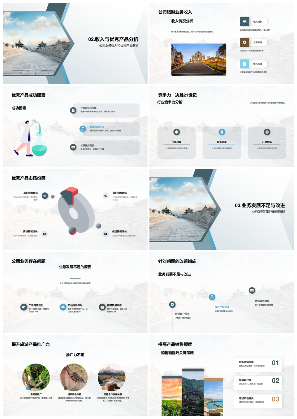 旅游业绩数据解析全球竞对古建推广未来规划PPT模板推荐