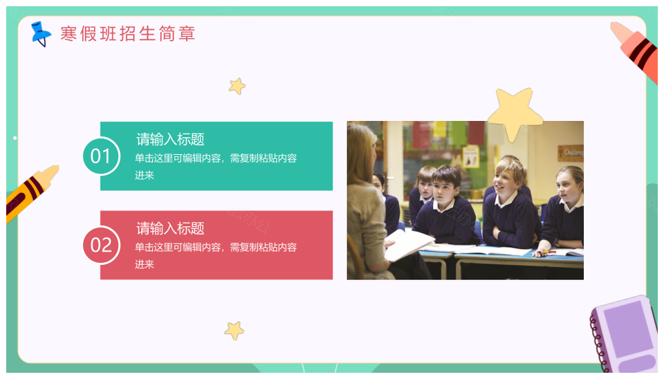 2025手绘卡通儿童寒假班教育招生教学PPT模板