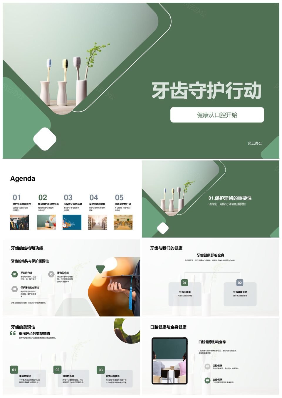 风云办公提供的守护牙齿健康正确刷牙定期检查PPT模板,下载格式为pptx,一共33页,作品中文字及图均可以修改和编辑,图片更改请在作品中右键图片并更换,文字修改请直接点击文字进行修改。