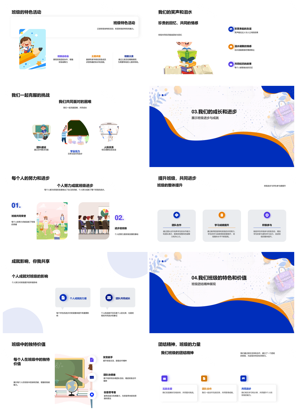 风云办公提供的班级成长历程点滴特色欢笑共进提升PPT模板,下载格式为pptx,一共23页,作品中文字及图均可以修改和编辑,图片更改请在作品中右键图片并更换,文字修改请直接点击文字进行修改。