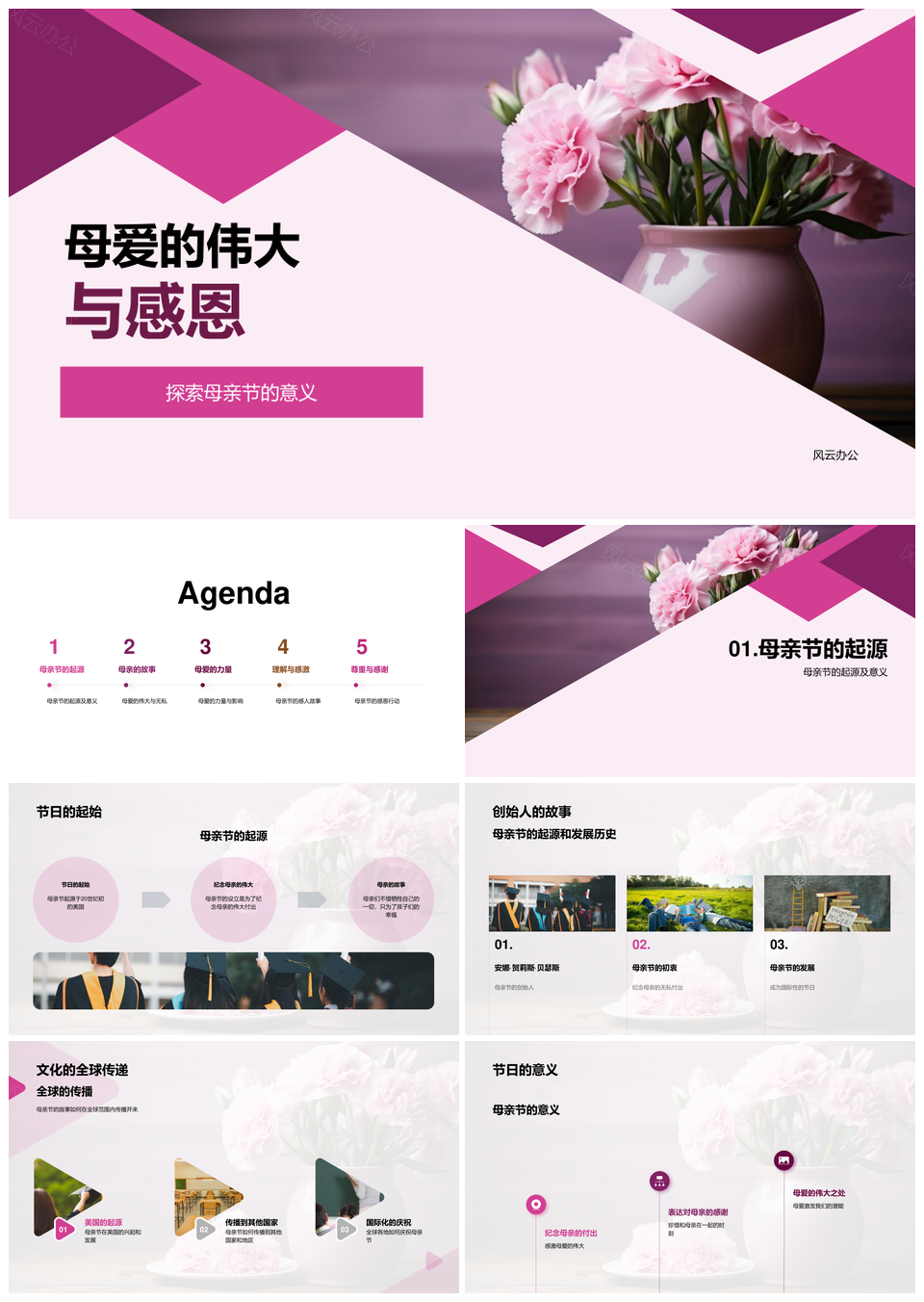 风云办公提供的母亲节礼赞母爱伟大感恩无私付出PPT模板,下载格式为pptx,一共33页,作品中文字及图均可以修改和编辑,图片更改请在作品中右键图片并更换,文字修改请直接点击文字进行修改。