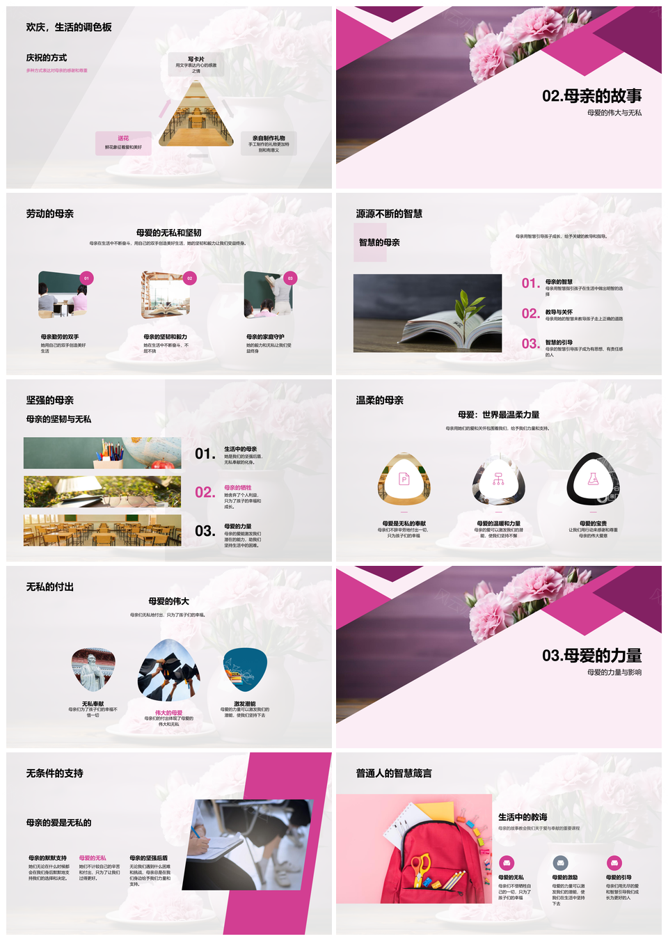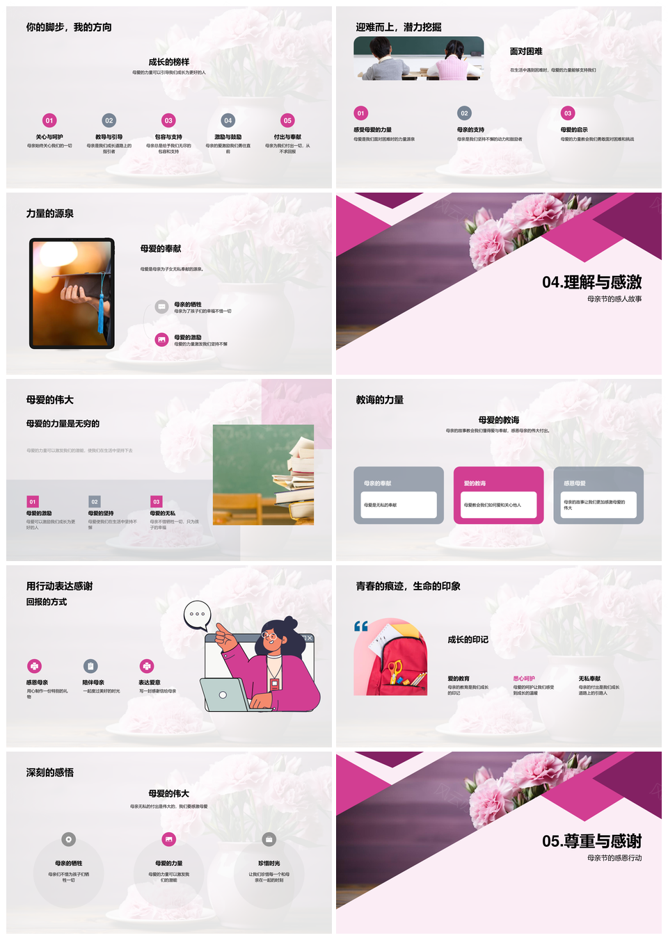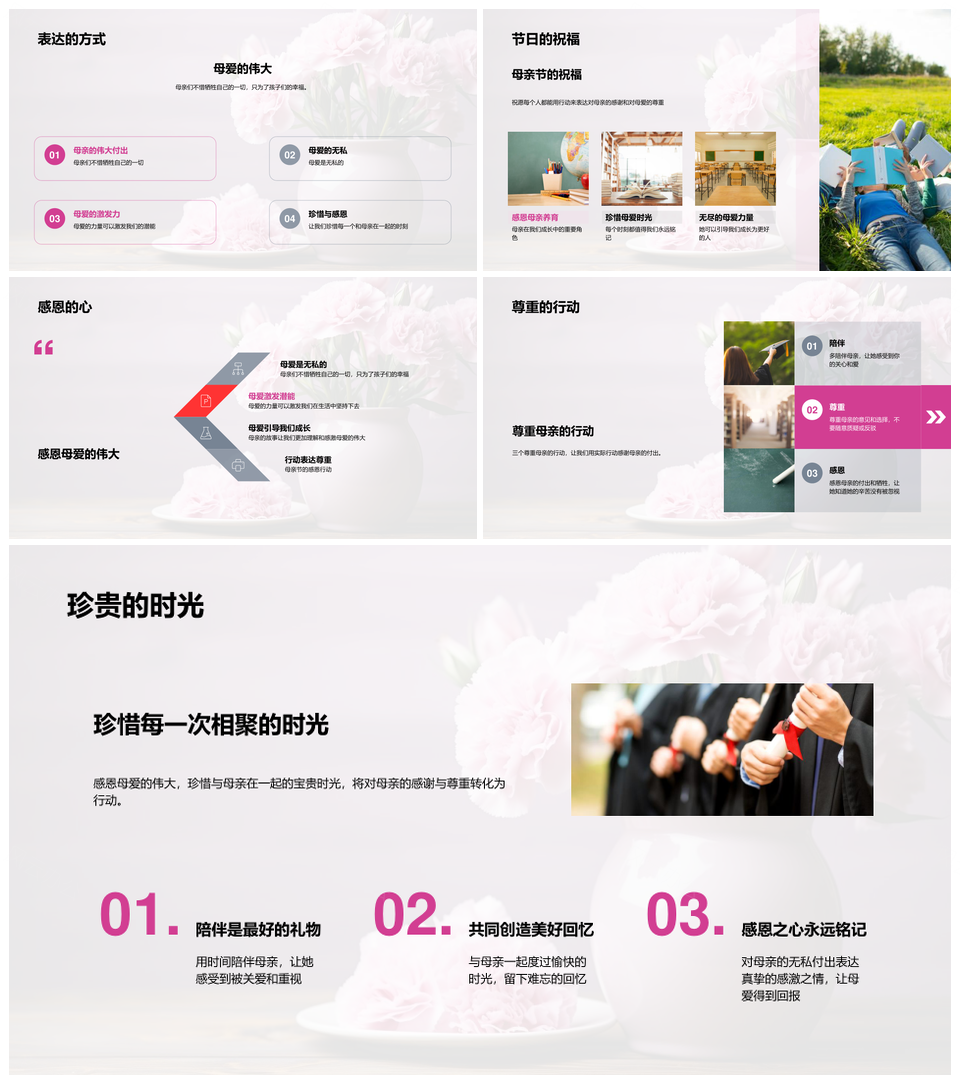 这是一张母亲节礼赞母爱伟大感恩无私付出PPT模板,包含母亲节、礼赞、母爱、伟大、感恩、无私、付出等主题内容,也可用作母亲节礼赞母爱伟大、伟大母爱无私付出、感恩无私付出母爱、礼赞母爱伟大感恩、母爱伟大感恩无私、无私付出感恩母亲节、母亲节感恩无私付出、礼赞伟大母爱感恩、母爱无私付出伟大、伟大感恩无私母爱、母亲节礼赞伟大母爱、礼赞母爱伟大无私、母爱无私伟大付出、感恩付出母爱伟大、伟大母爱感恩付出等PPT场景使用。