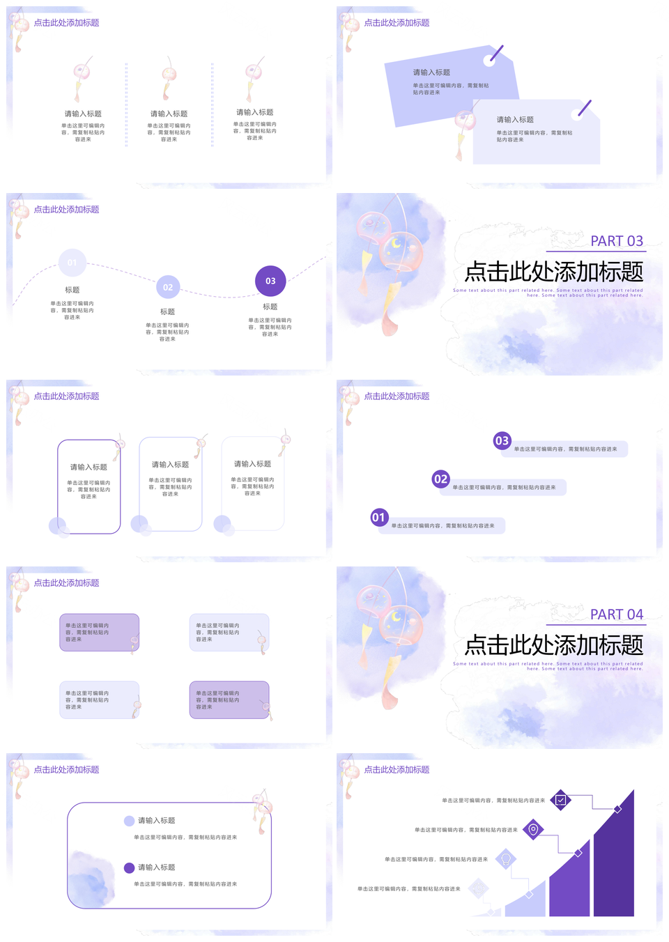 紫色万花丛中水彩小清新创意简约发布会产品介绍通用PPT模板