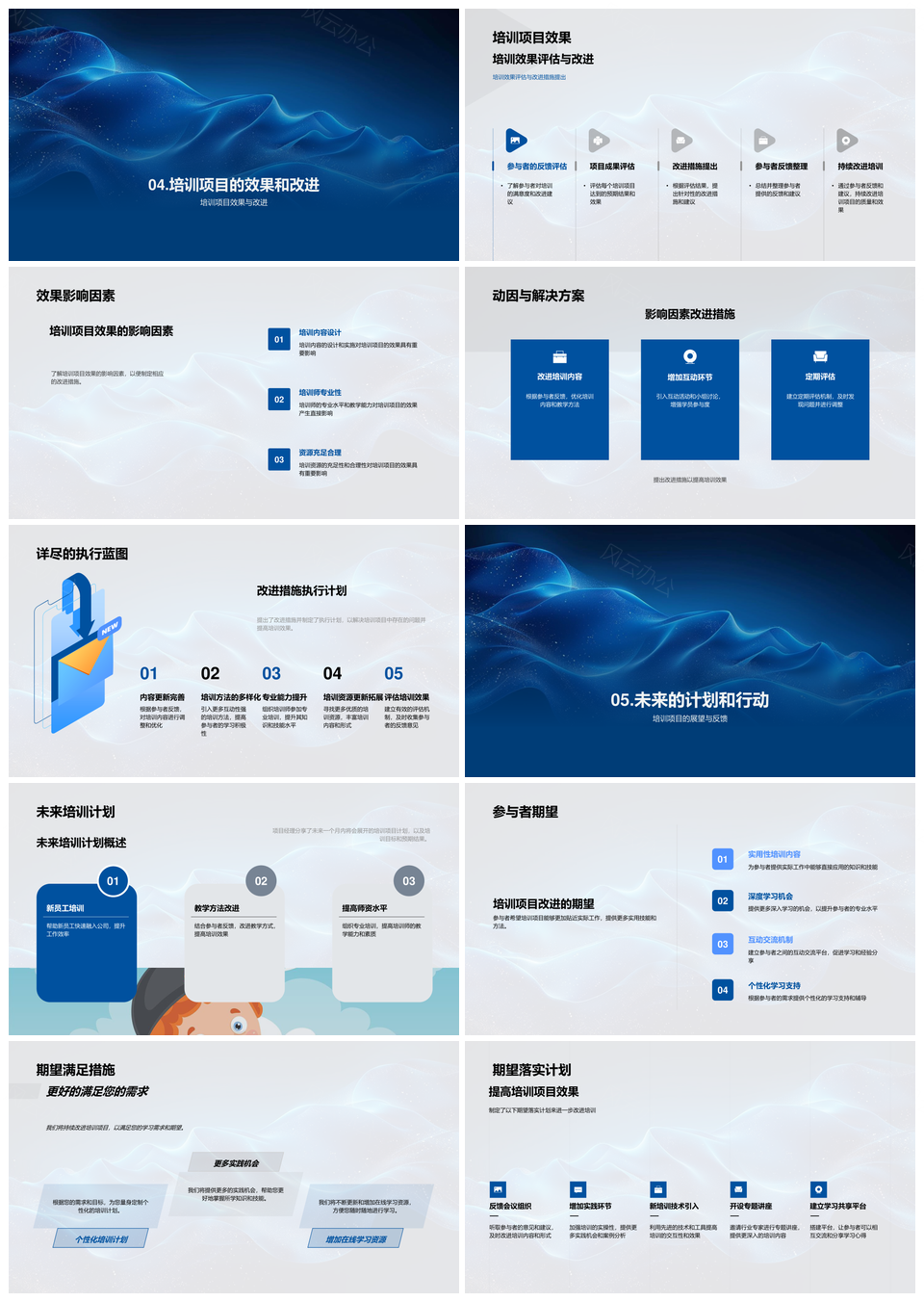 风云办公提供的月度培训项目效果评估反馈与改进计划PPT模板,下载格式为pptx,一共28页,作品中文字及图均可以修改和编辑,图片更改请在作品中右键图片并更换,文字修改请直接点击文字进行修改。