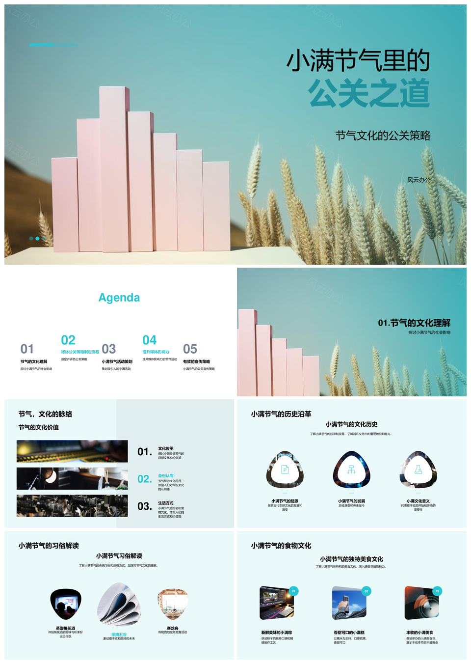 风云办公提供的小满节气公关策略与节气文化媒体活动PPT模板,下载格式为pptx,一共33页,作品中文字及图均可以修改和编辑,图片更改请在作品中右键图片并更换,文字修改请直接点击文字进行修改。
