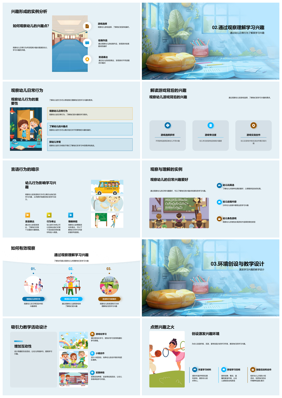 这是一张幼儿学习兴趣激发策略教师培训课件实践观察PPT模板,包含幼儿、学习、兴趣、激发、策略、教师、培训、课件、实践、观察等主题内容,也可用作幼儿学习兴趣激发策略教师培训、学习兴趣激发策略教师培训、兴趣激发策略教师培训课件、激发策略教师培训课件实践、策略教师培训课件实践观察、幼儿学习兴趣激发策略教师、学习兴趣激发策略教师培训、兴趣激发策略教师培训课件、激发策略教师培训课件实践、策略教师培训课件实践观察、教师培训课件实践观察、幼儿学习兴趣激发策略、学习兴趣激发策略教师、兴趣激发策略教师培训、激发策略教师培训课件等PPT场景使用。 风云办公提供的幼儿学习兴趣激发策略教师培训课件实践观察PPT模板,下载格式为pptx,一共33页,作品中文字及图均可以修改和编辑,图片更改请在作品中右键图片并更换,文字修改请直接点击文字进行修改。