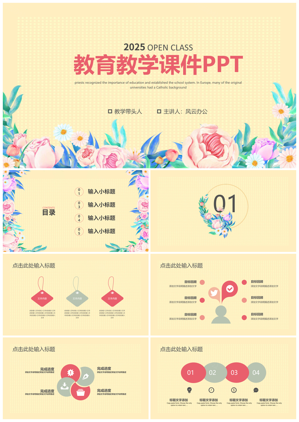 风云办公提供的2025清新黄教学说课PPT模板设计,下载格式为pptx,一共25页,作品中文字及图均可以修改和编辑,图片更改请在作品中右键图片并更换,文字修改请直接点击文字进行修改。