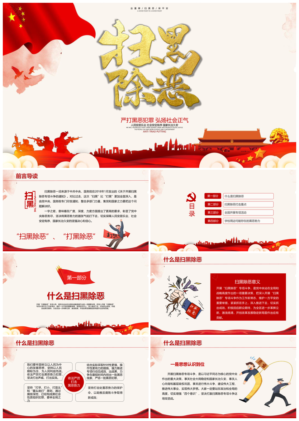 红色扫黑除恶弘扬正气党政宣传教育PPT模板