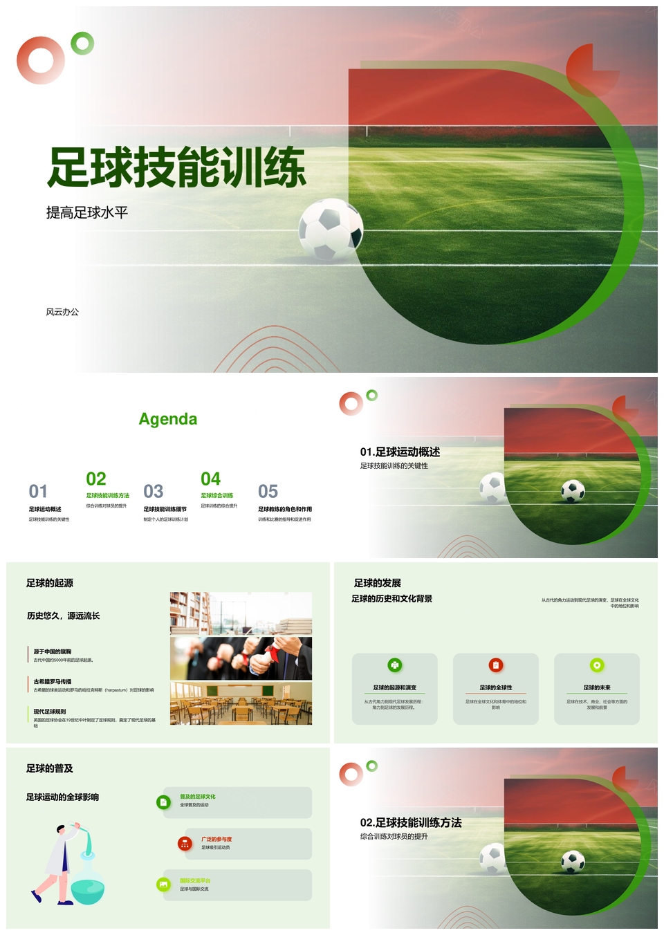 风云办公提供的足球技战术与身体素质综合训练提升PPT模板,下载格式为pptx,一共23页,作品中文字及图均可以修改和编辑,图片更改请在作品中右键图片并更换,文字修改请直接点击文字进行修改。