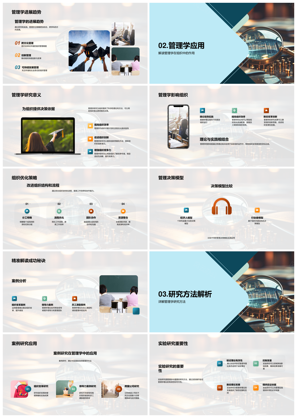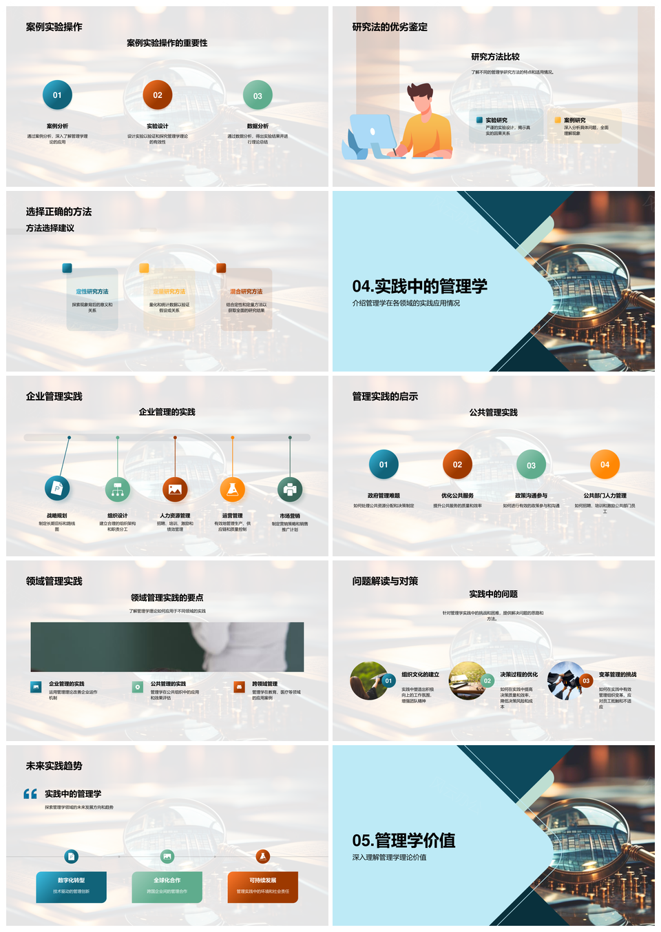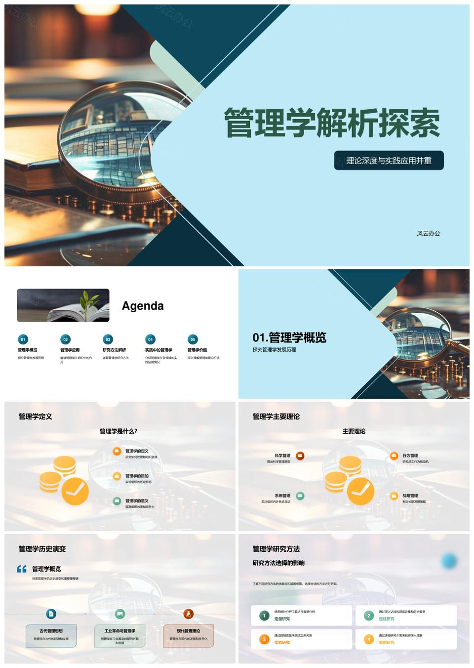 风云办公提供的管理学理论应用与史论方法策略研究PPT模板,下载格式为pptx,一共33页,作品中文字及图均可以修改和编辑,图片更改请在作品中右键图片并更换,文字修改请直接点击文字进行修改。