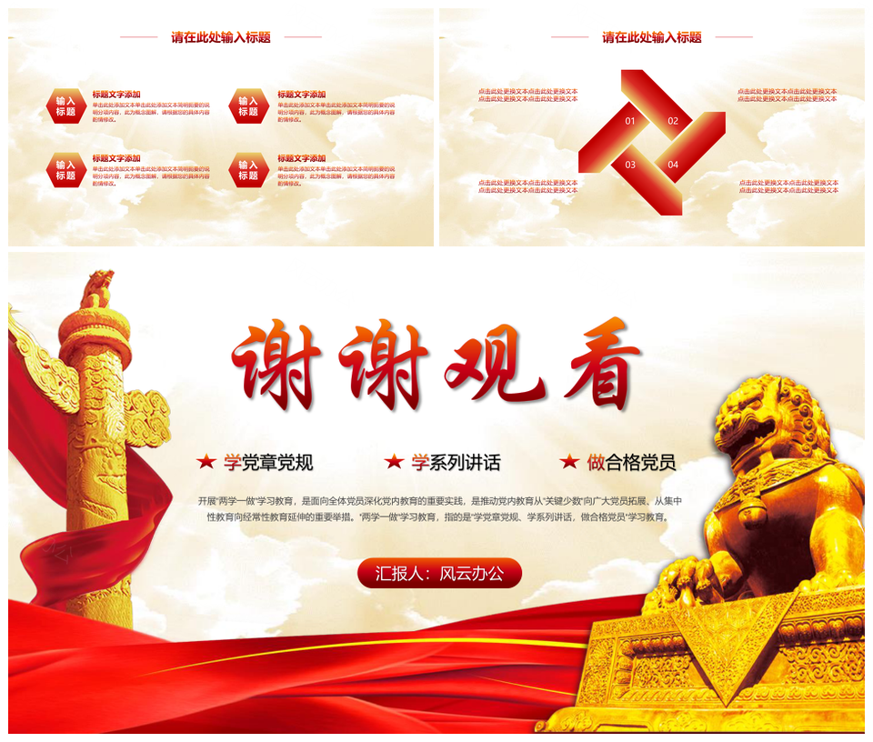 红色黄色党政风党建风两学一做工作报告PPT模板