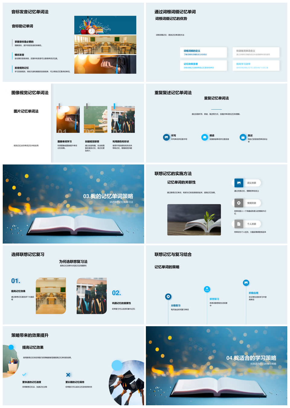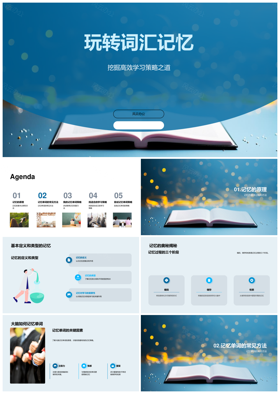 风云办公提供的高效词汇记忆策略音标词根图像复述PPT模板,下载格式为pptx,一共26页,作品中文字及图均可以修改和编辑,图片更改请在作品中右键图片并更换,文字修改请直接点击文字进行修改。