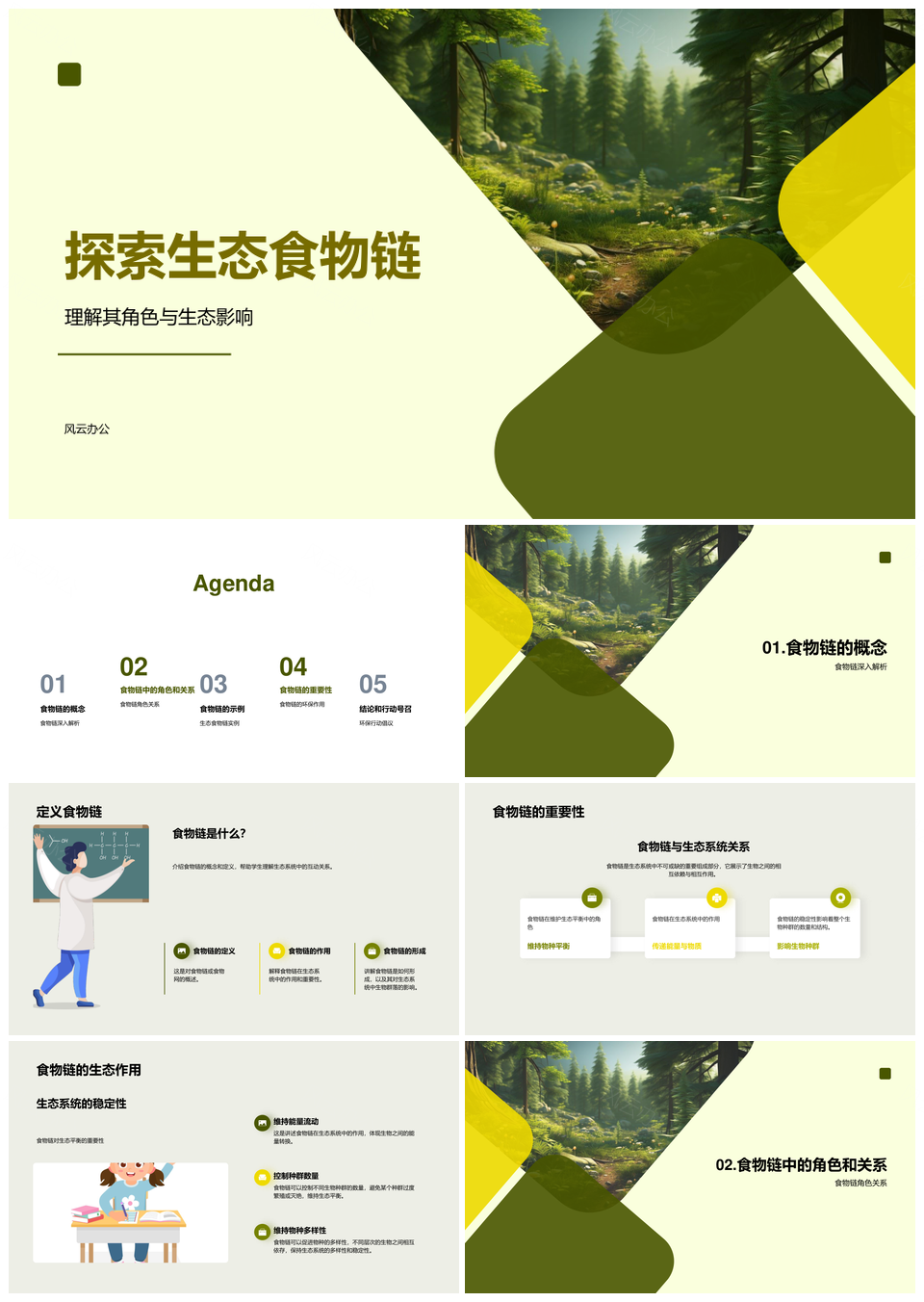 这是一张生态食物链维系生态系统平衡与环境保护PPT模板,包含生态食物链、维系、生态系统、平衡、环境保护等主题内容,也可用作生态食物链维系生态系统平衡、生态食物链维系环境保护、食物链维系生态系统平衡、生态系统平衡环境保护、生态食物链维系平衡、维系生态系统平衡环境保护、生态食物链生态系统平衡、食物链生态系统平衡环境保护、生态维系生态系统平衡、食物链维系环境保护、生态平衡环境保护、生态食物链生态系统、生态系统维系平衡、食物链维系平衡、生态食物链平衡等PPT场景使用。 风云办公提供的生态食物链维系生态系统平衡与环境保护PPT模板,下载格式为pptx,一共24页,作品中文字及图均可以修改和编辑,图片更改请在作品中右键图片并更换,文字修改请直接点击文字进行修改。