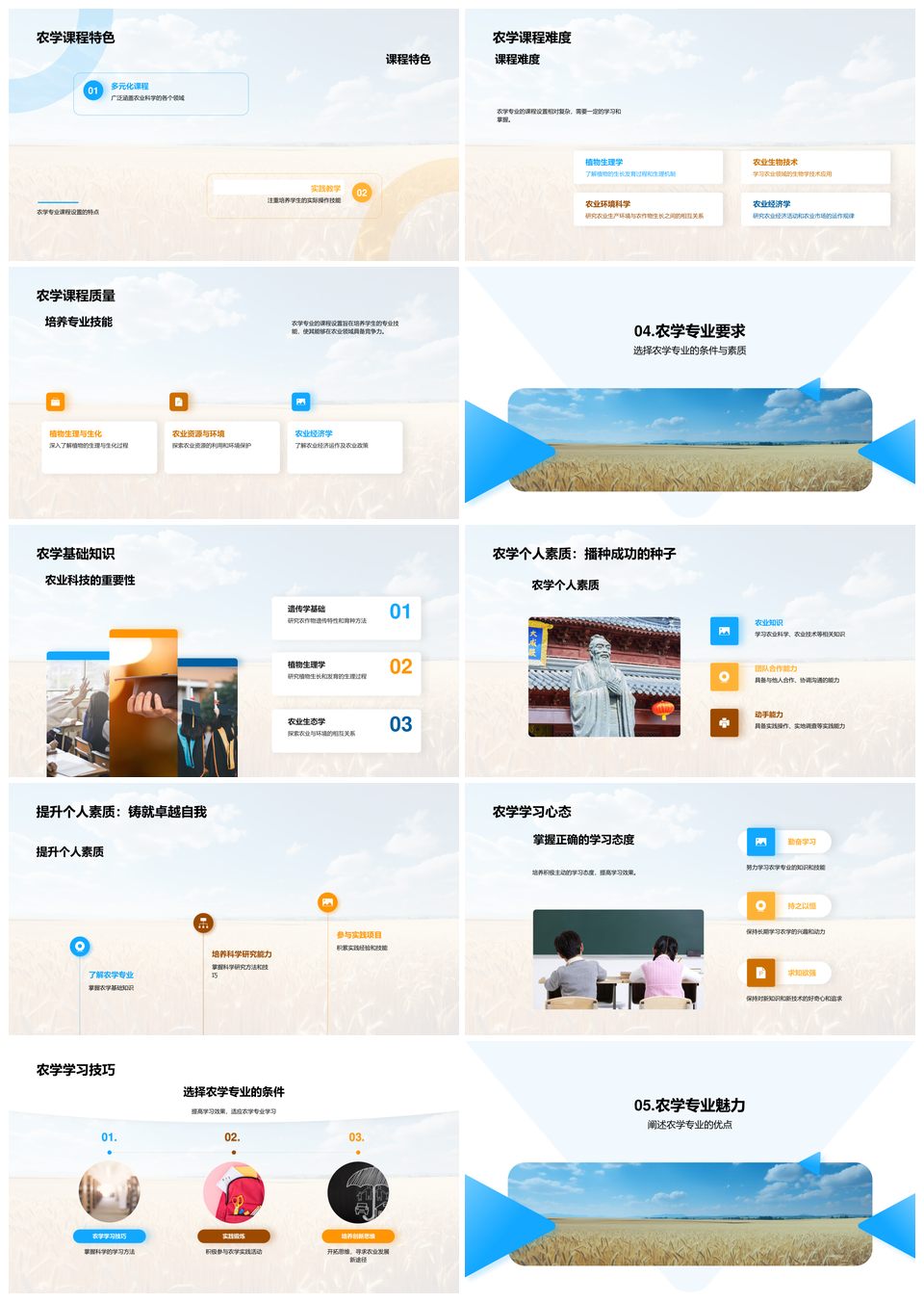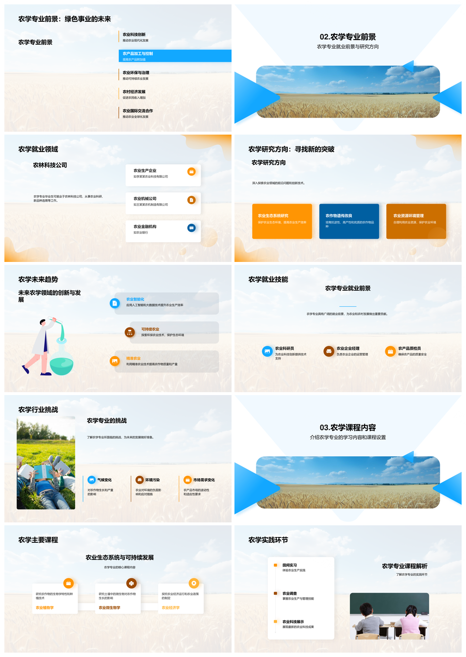 农学专业发展历程分类研究方向就业前景趋势PPT模板推荐