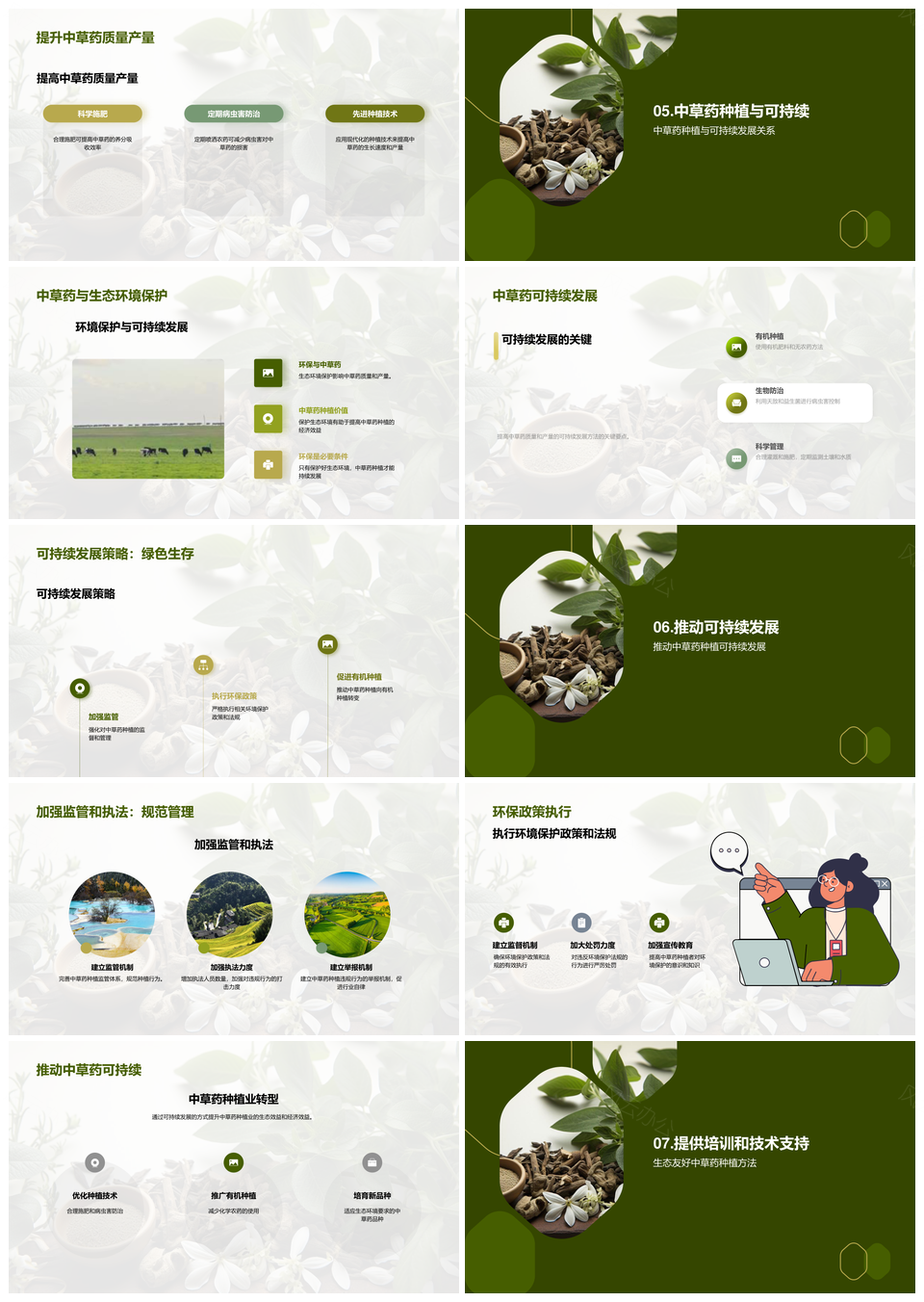 风云办公提供的生态种药护环境提质量增产量政策助PPT模板,下载格式为pptx,一共31页,作品中文字及图均可以修改和编辑,图片更改请在作品中右键图片并更换,文字修改请直接点击文字进行修改。
