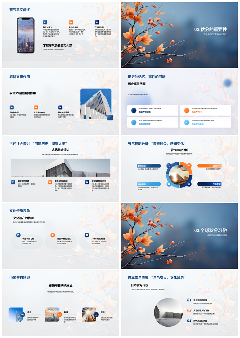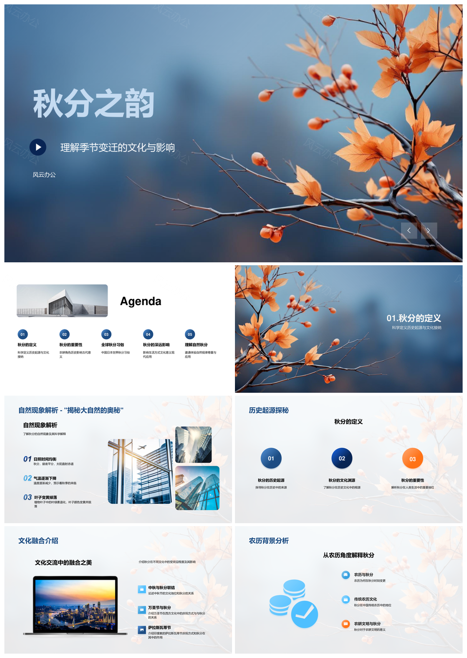 风云办公提供的秋分农耕起源与节日文化交流PPT模板,下载格式为pptx,一共33页,作品中文字及图均可以修改和编辑,图片更改请在作品中右键图片并更换,文字修改请直接点击文字进行修改。
