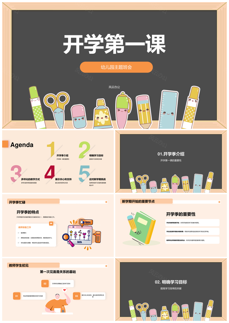 风云办公提供的黄黑卡通开学第一课班会插画PPT模板,下载格式为pptx,一共21页,作品中文字及图均可以修改和编辑,图片更改请在作品中右键图片并更换,文字修改请直接点击文字进行修改。