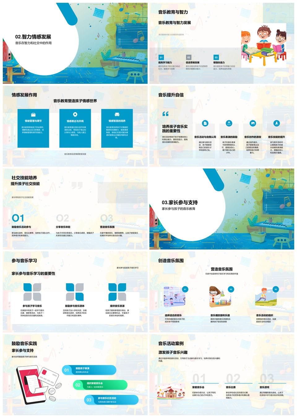 音乐教育家校协作提升素养跨科教法家庭活动情感氛围PPT模板推荐